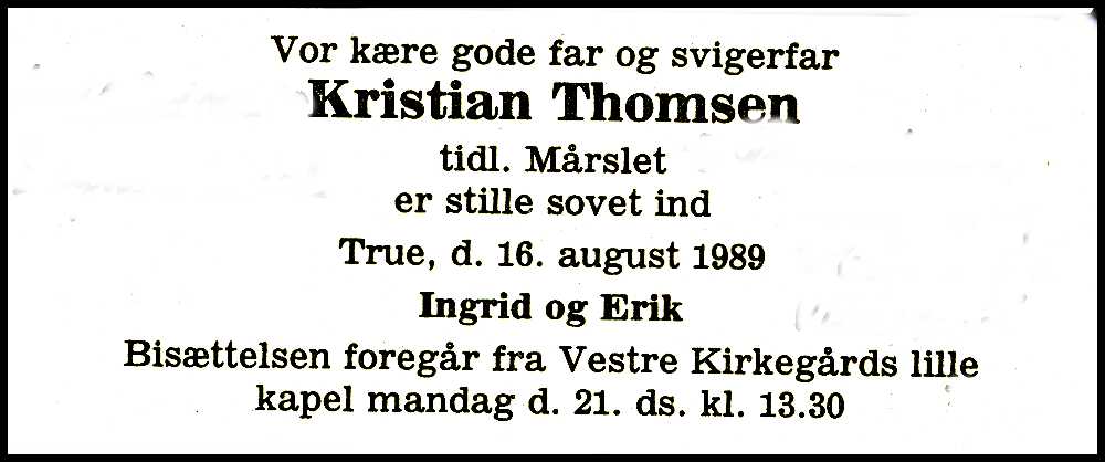 Begravet i afsnit B - gravsted B187. Gravstedet er nedlagt og gravstenen er ikke bevaret.