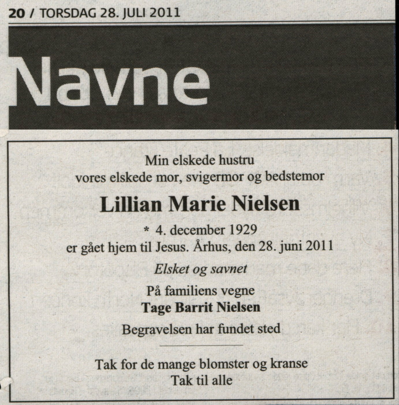 Døbt og konfirmeret i Mårslet Kirke. Ikke begravet i Mårslet.
