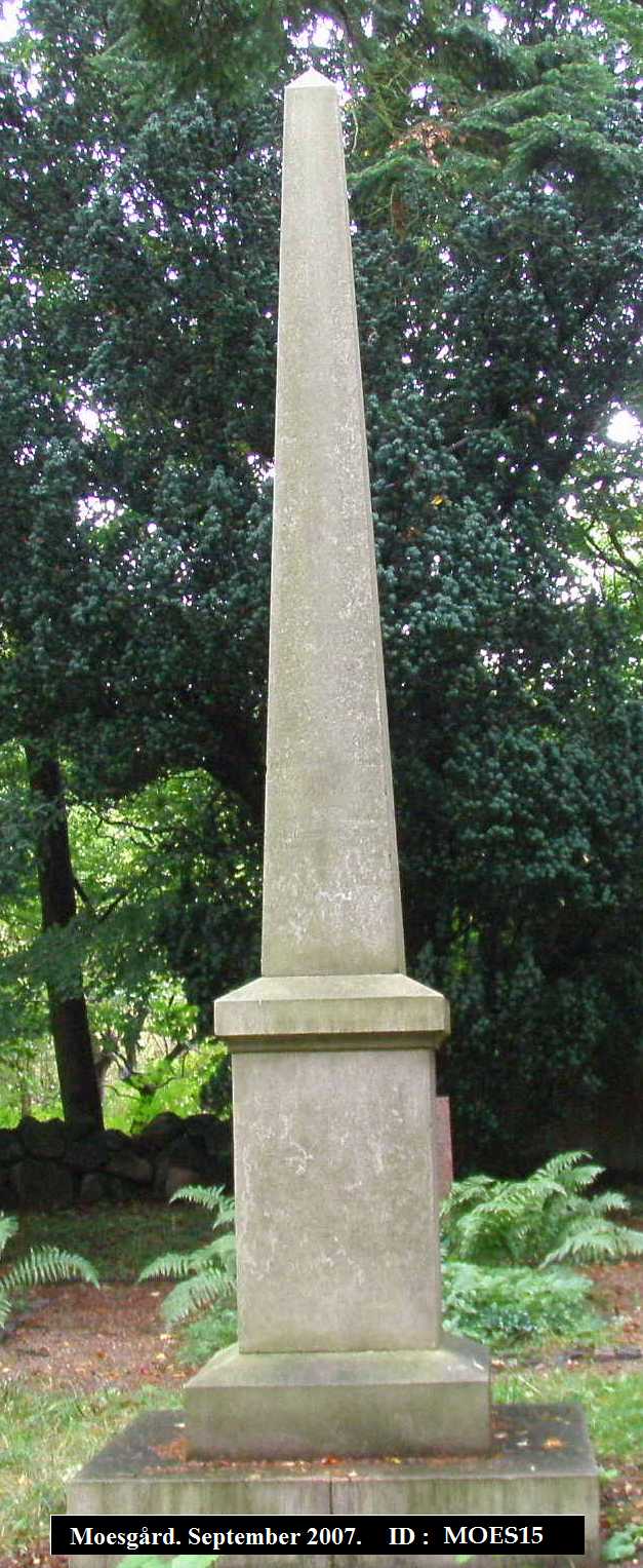 Obelisken med indskriften står på gravpladsen i Moesgård park. Thorkild Christian Dahls farfar, søster og bror. Personerne har ingen tilknytning til Mårslet sogn. |