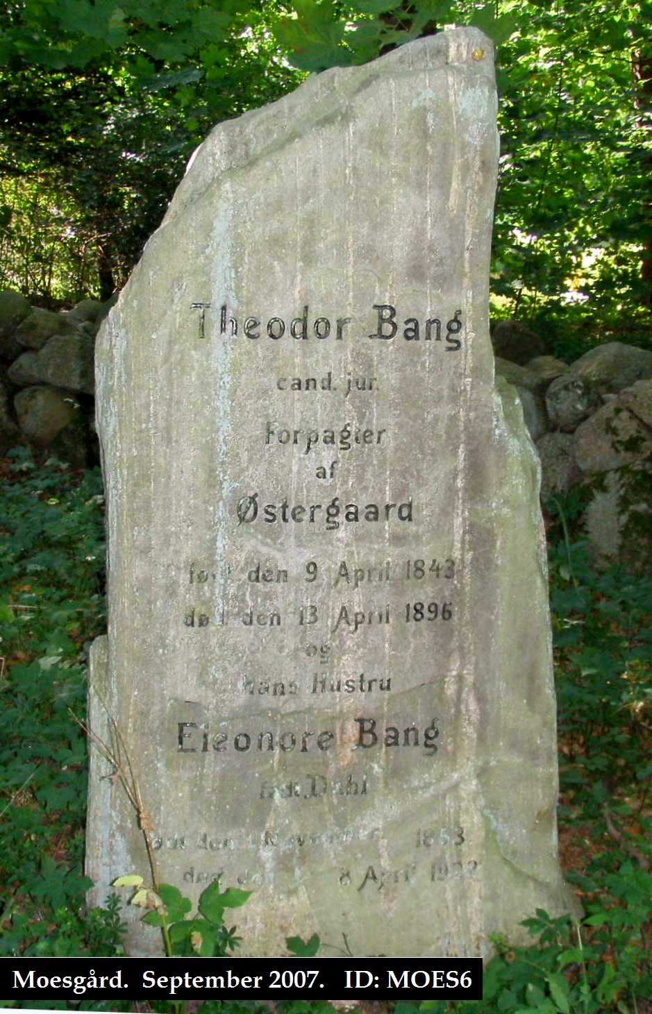 Eleonores far Gravstenen står på gravpladsen i Moesgård park. |
