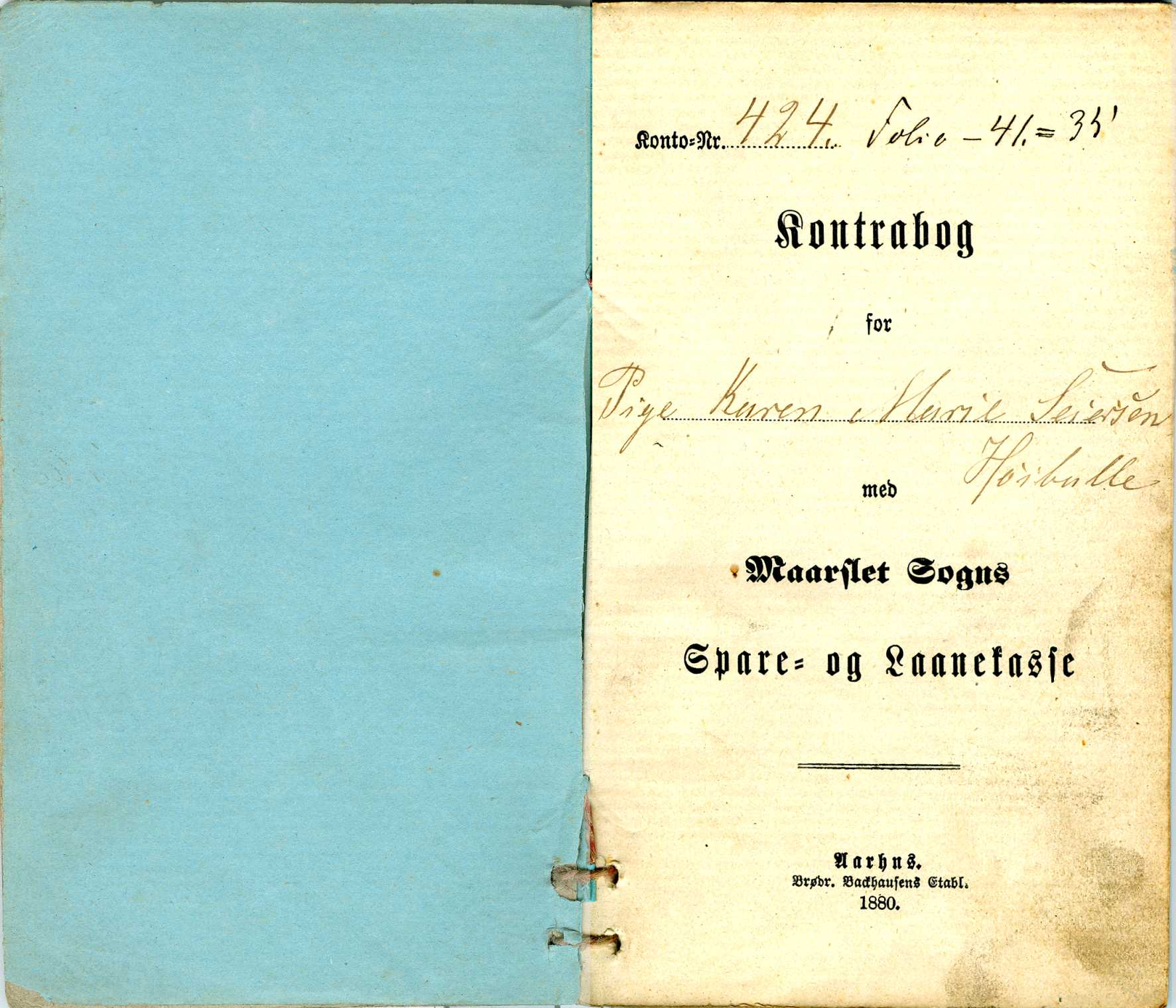 Kontrabog for: Pige Karen Marie Seiersen, Højballe. Side 1.