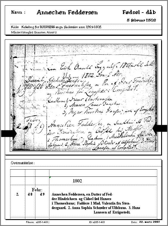 Fødselen er på gravstenen fejlagtigt angivet til: 8 januar 1801!