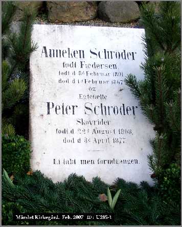 Gravstenen over skovridder Peter Schrøder (1808-77) og hans hustru Annechen Feddersen (1802-67).