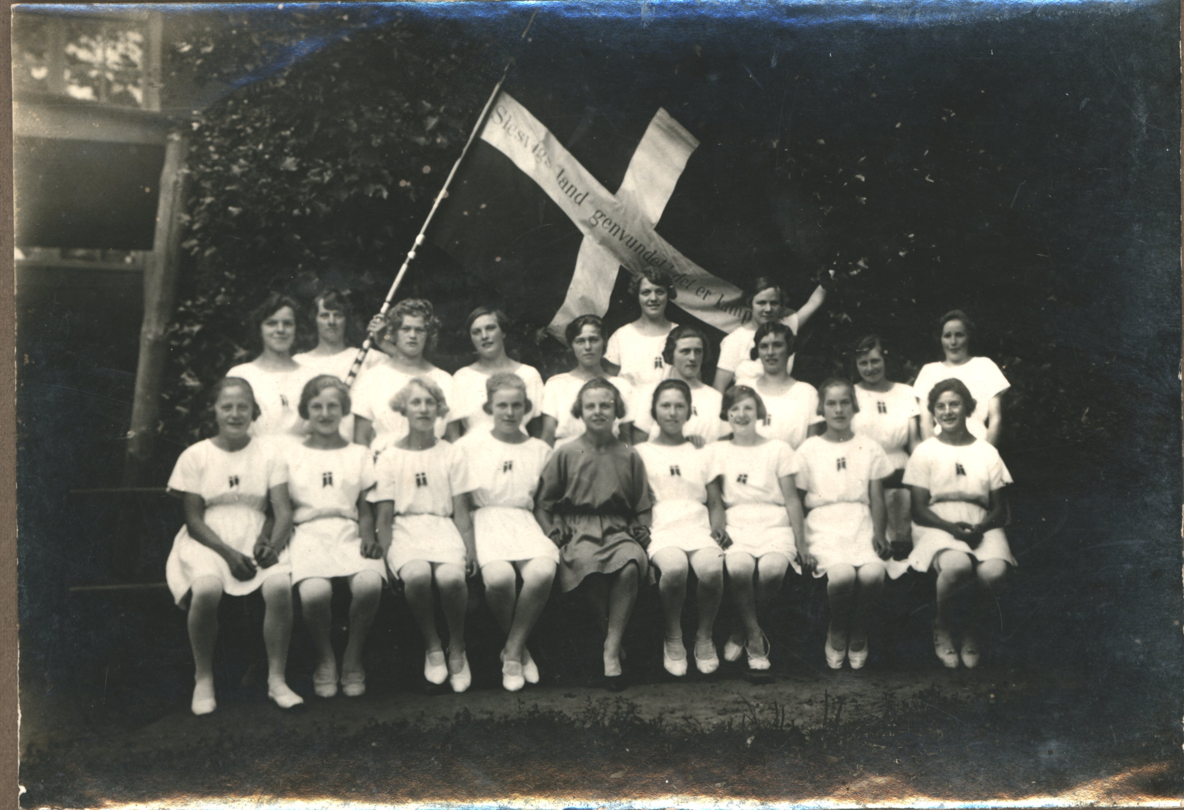 | Dagmar Petrea Sørensen, født den 9. juli 1911, datter af gårdmand i Obstrup Karl Marius Sørensen og hustru Maren Barbara Rasmussen Øvrige piger er ikke genkendt. Kan du genkende nogle ? Send en e-mail til: maarsletegnsarkiv@gmail.com | |