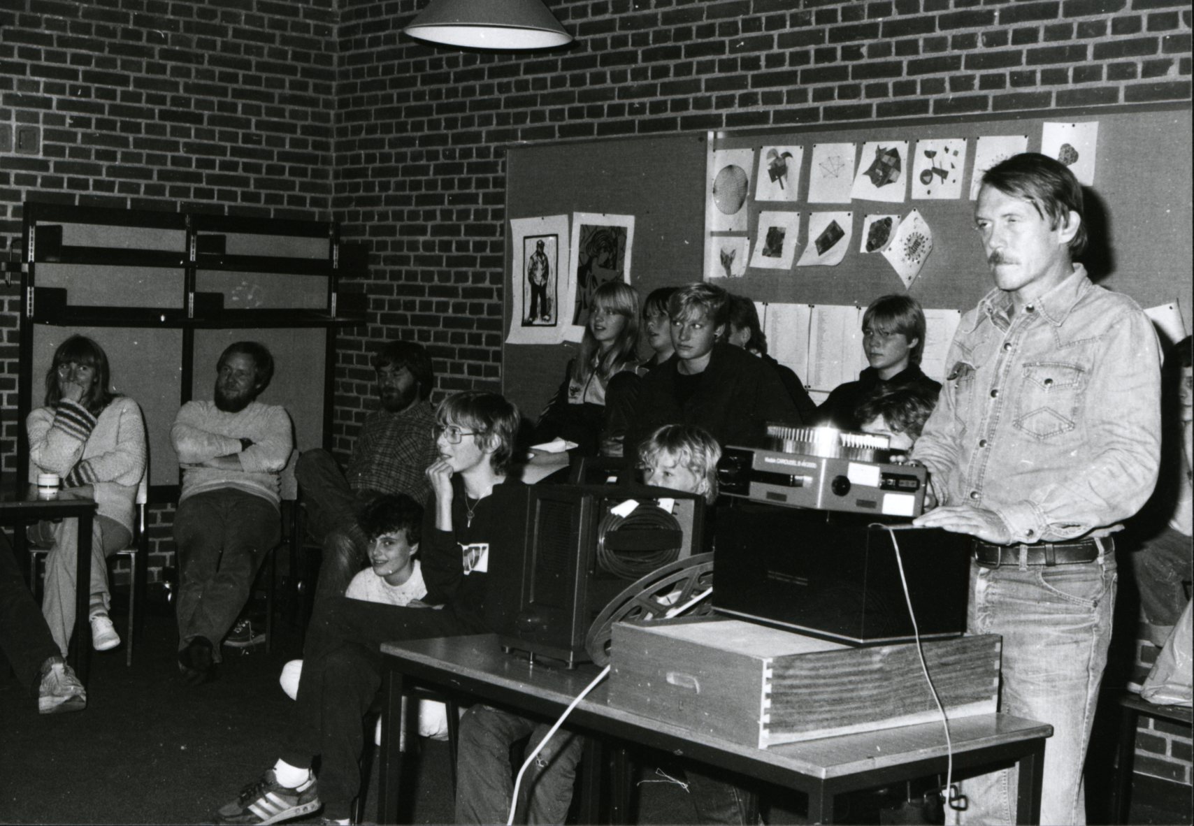 Mårslet Skole. Klasserum i B-huset. 1983 eller 1984. Temauge. Videoholdet.