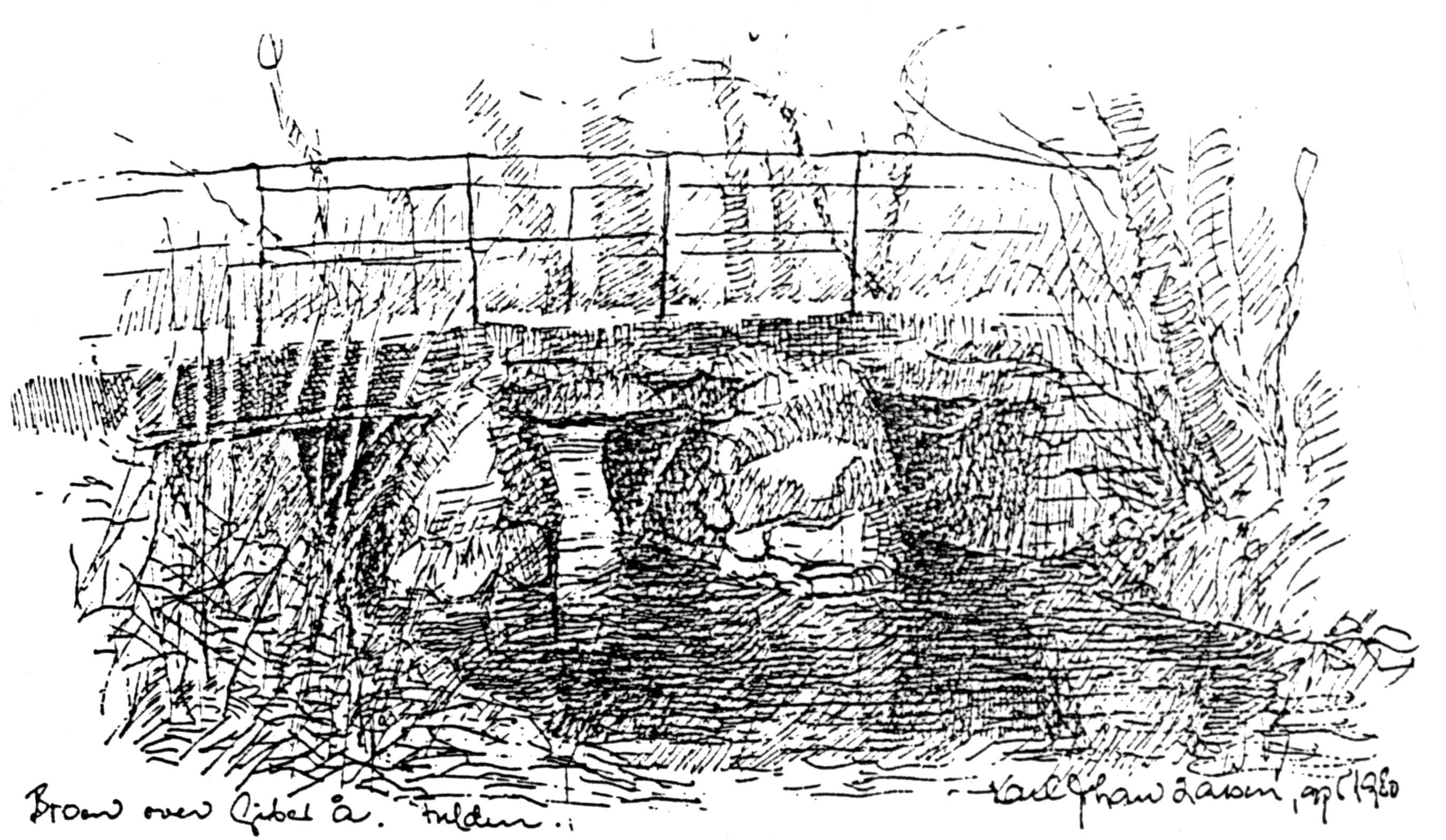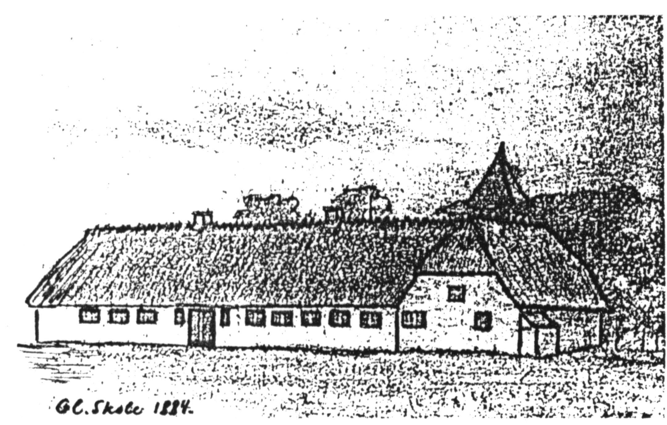 Fra Hans Møllers 'master' til hæfte 1) '23 lokalhistoriske artikler fra Mårslet sogn' Tegninger af Kaj Christensen + andre?.