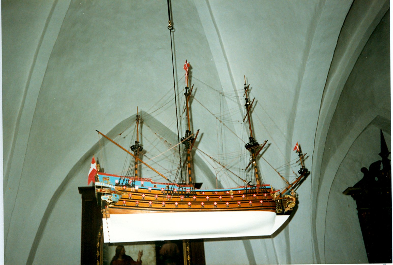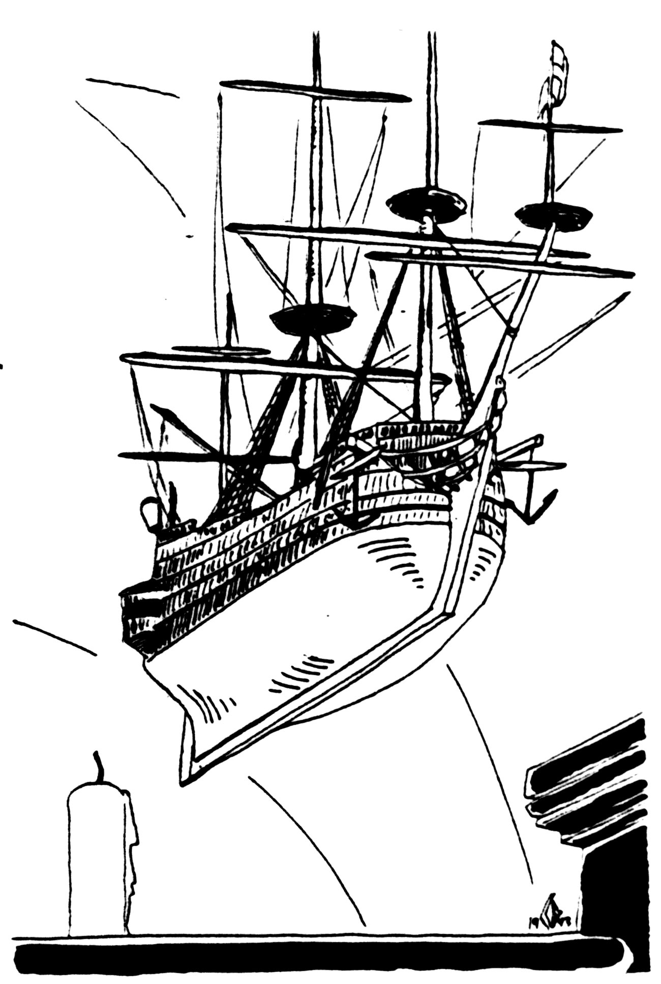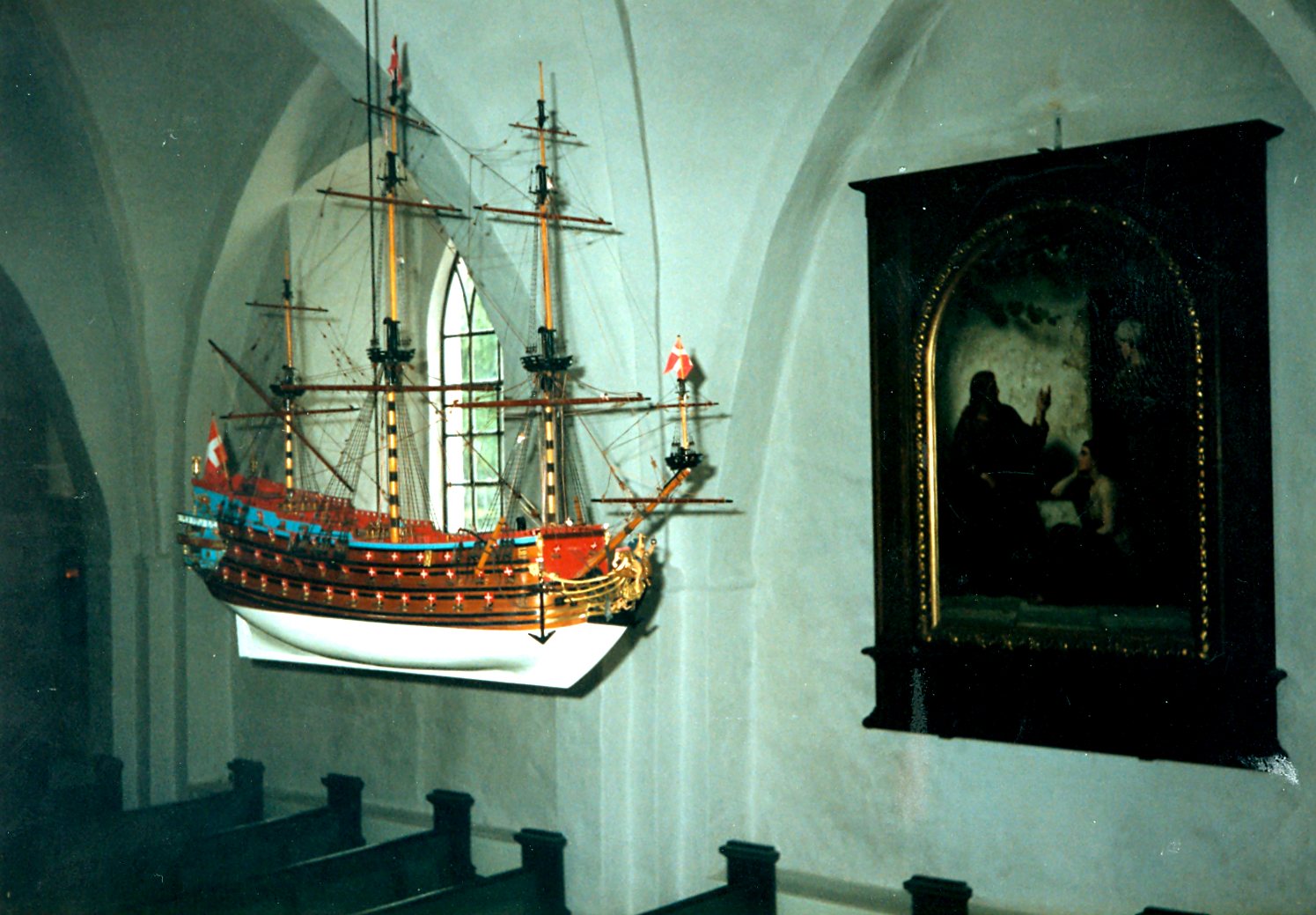 Fra Hans Møllers 'master' til hæfte 26) 'Fredericus Quartus - Kirkeskibet i Mårslet Kirke'. Tegning af Cristoffer Bech.