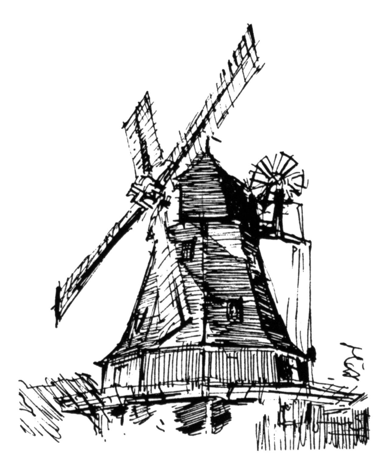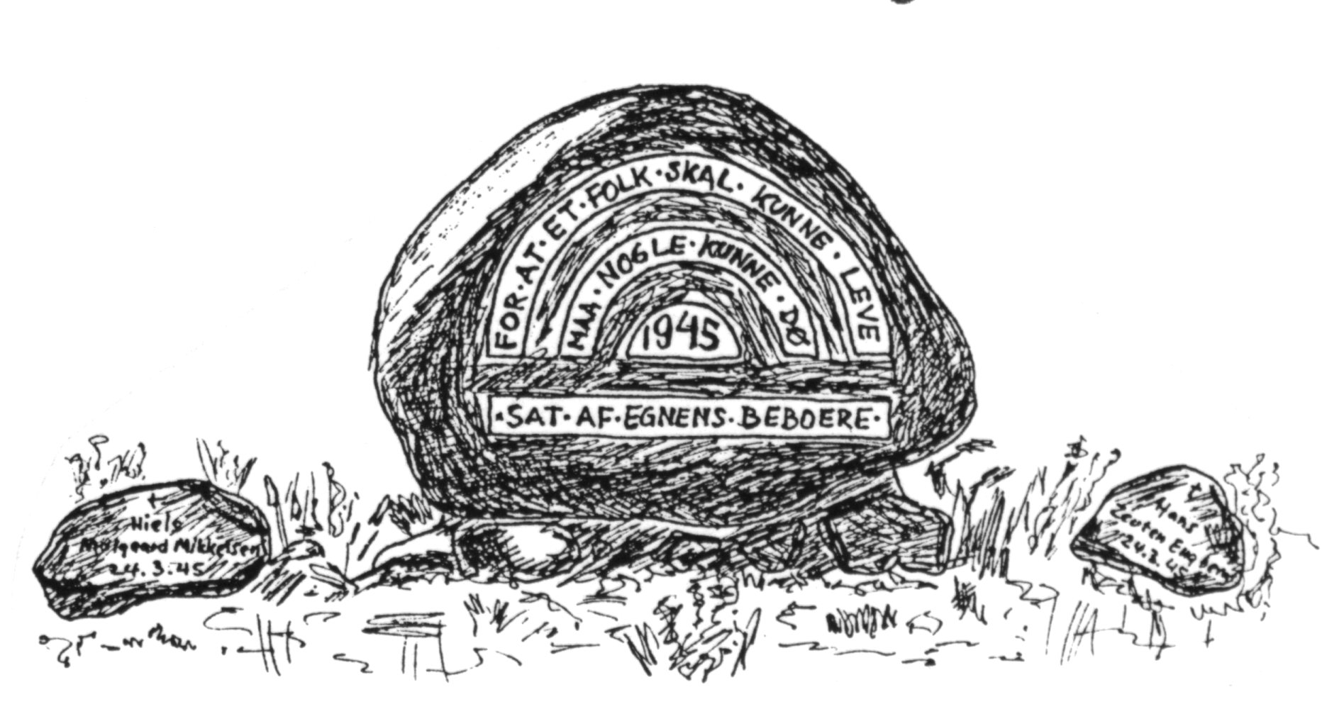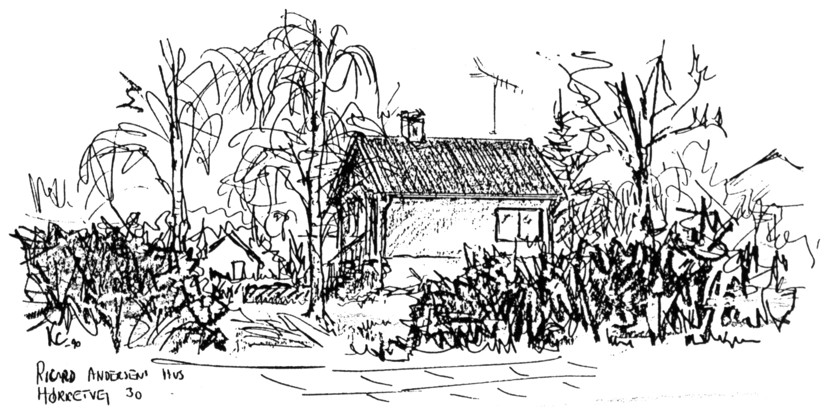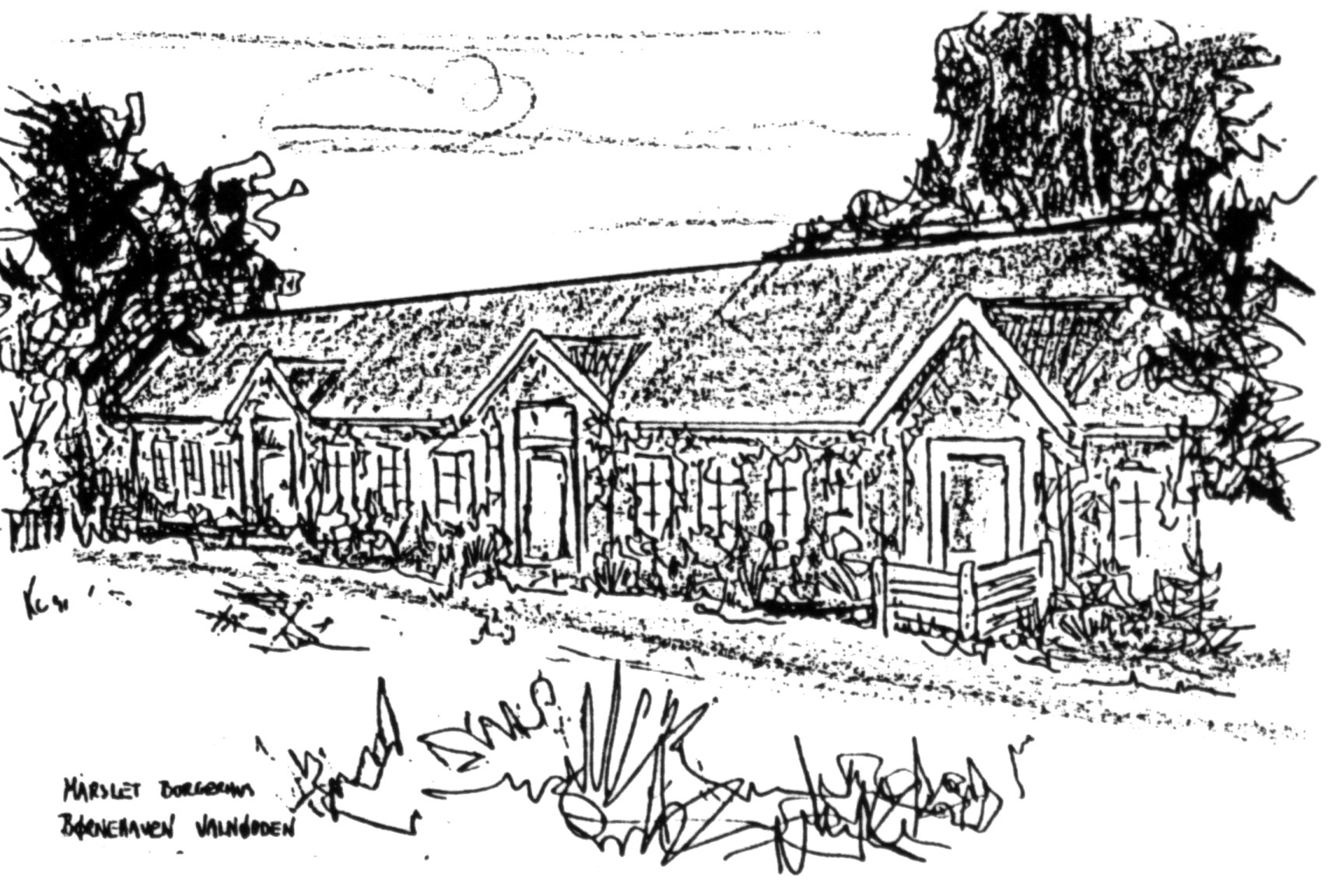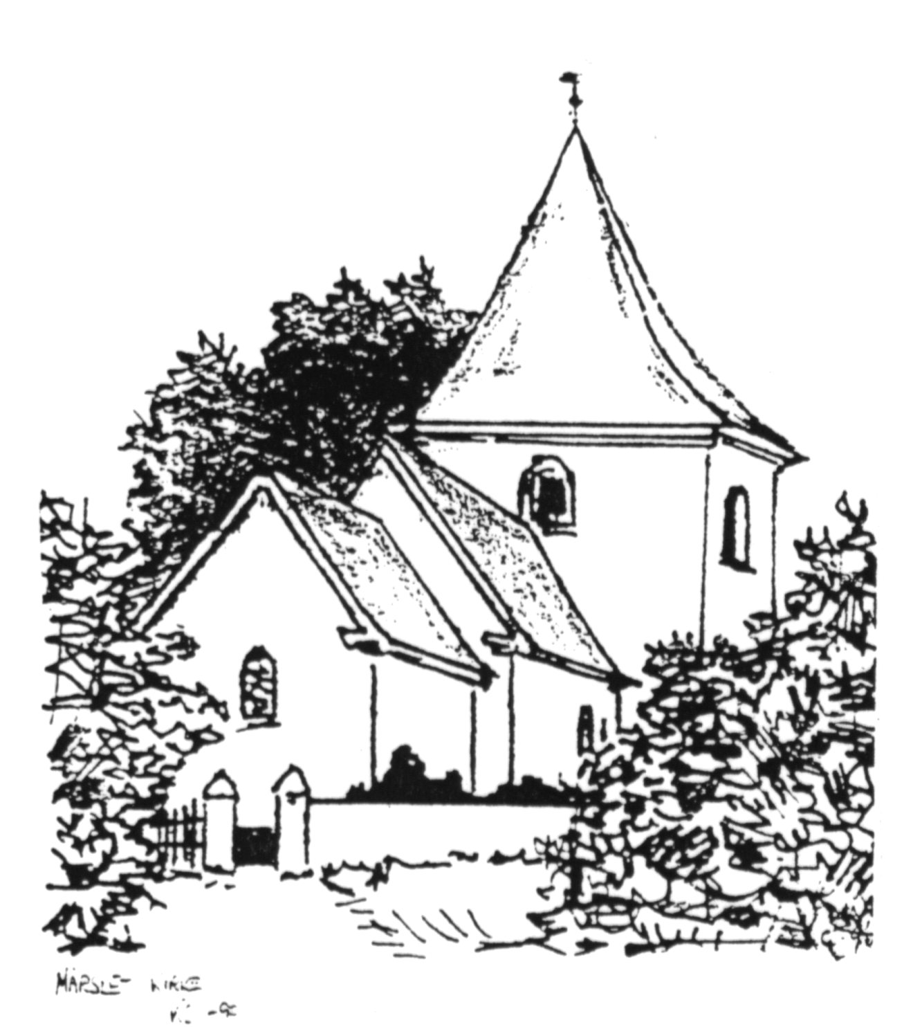Fra Hans Møllers 'master' til hæfte 2) '24 lokalhistoriske artikler fra Mårslet sogn' Tegninger af Kaj Christensen + andre?.
