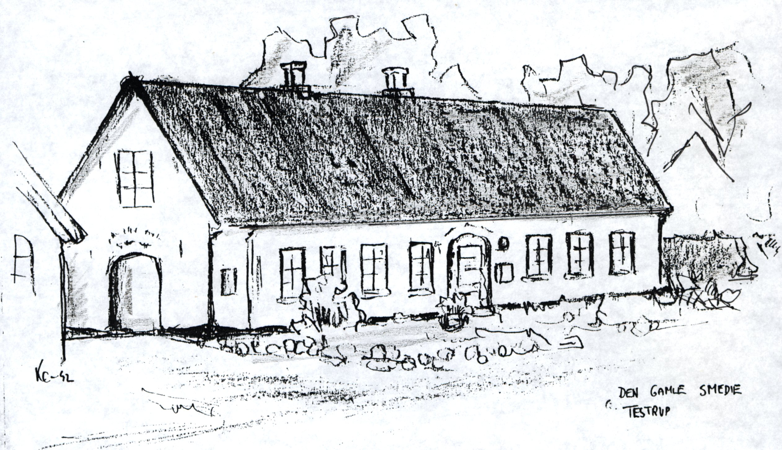 Testrup - Kaj Cristensens tegninger. Side 36 - 44 i '24 lokalhistoriske artikler fra Mårslet sogn'. De 2 sidste hæfte 1) '23 lokalhistoriske artikler fra Mårslet sogn' Side 41 & 43. Tegning: ??. -