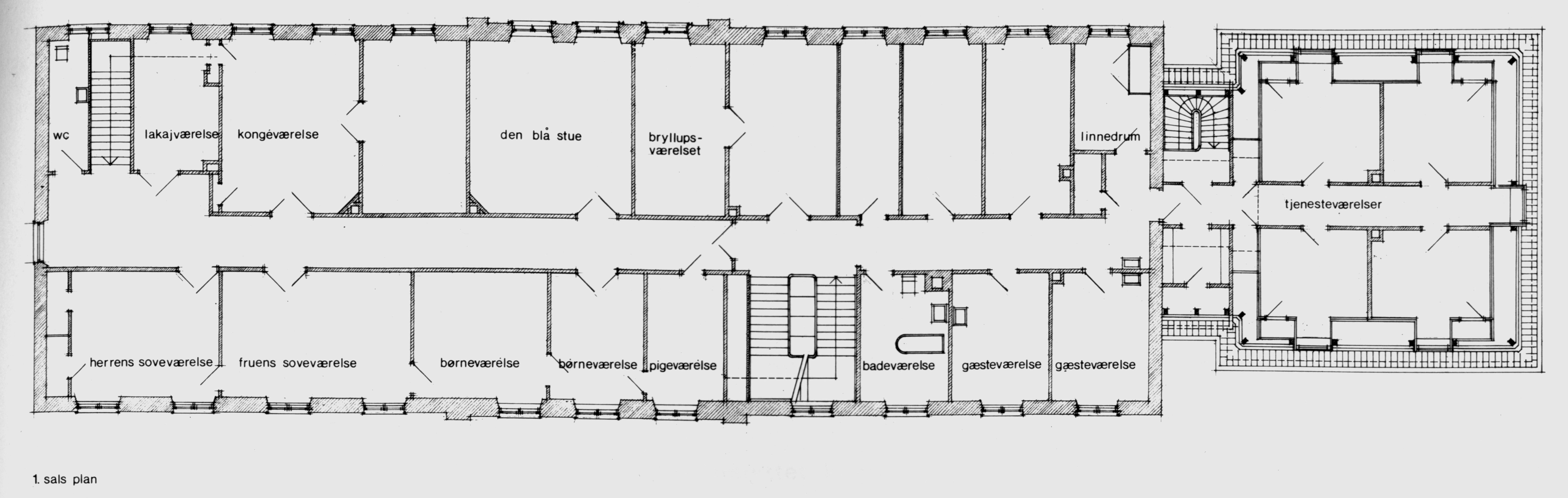 Grundridt taget fra Århus Kommunes dispositionsplan fra 1975 'Historie og fremtidge anvendelsesmulighedr - Vilhelmsborg' SE nedenfor.