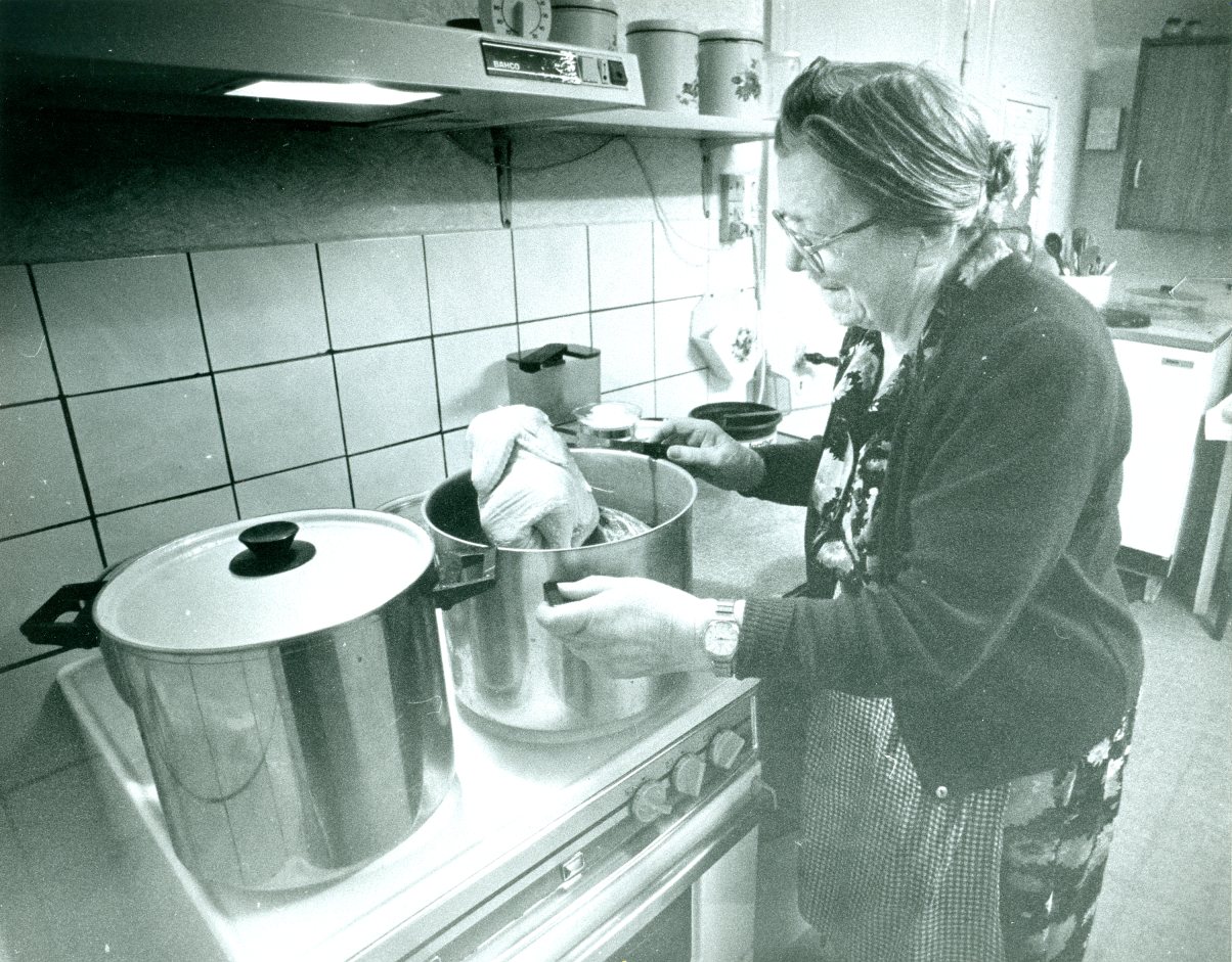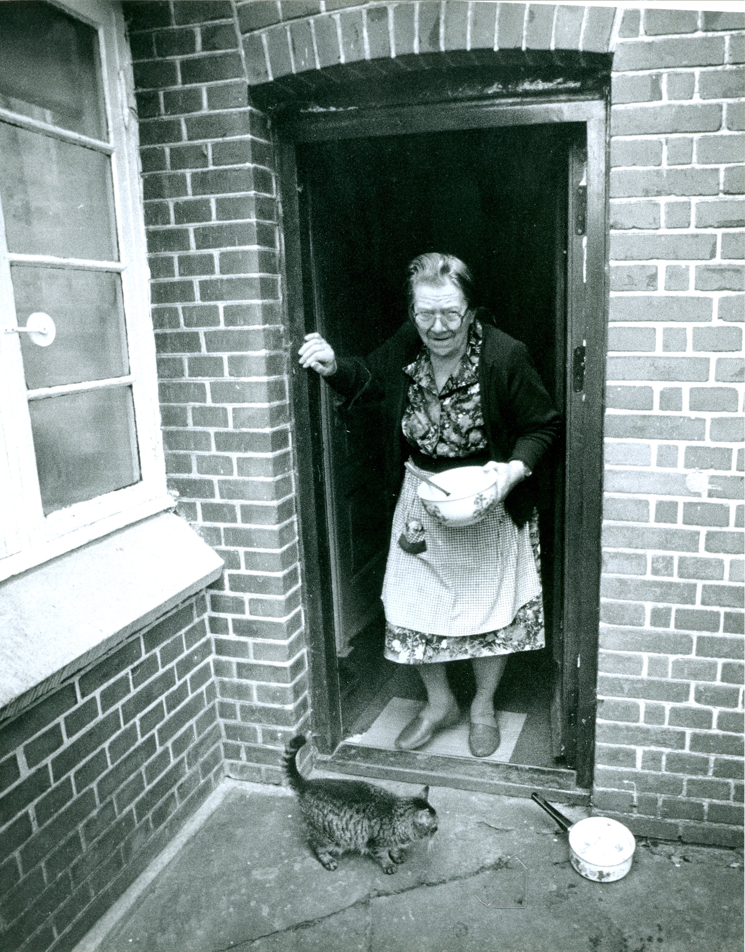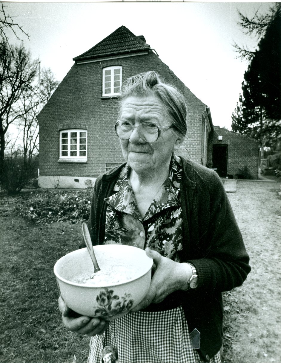 Anna Cathrine Margrethe Sofie Pedersen (1905-2001), gift Iversen i sit hus Hørret Byvej 19, Hørret.
