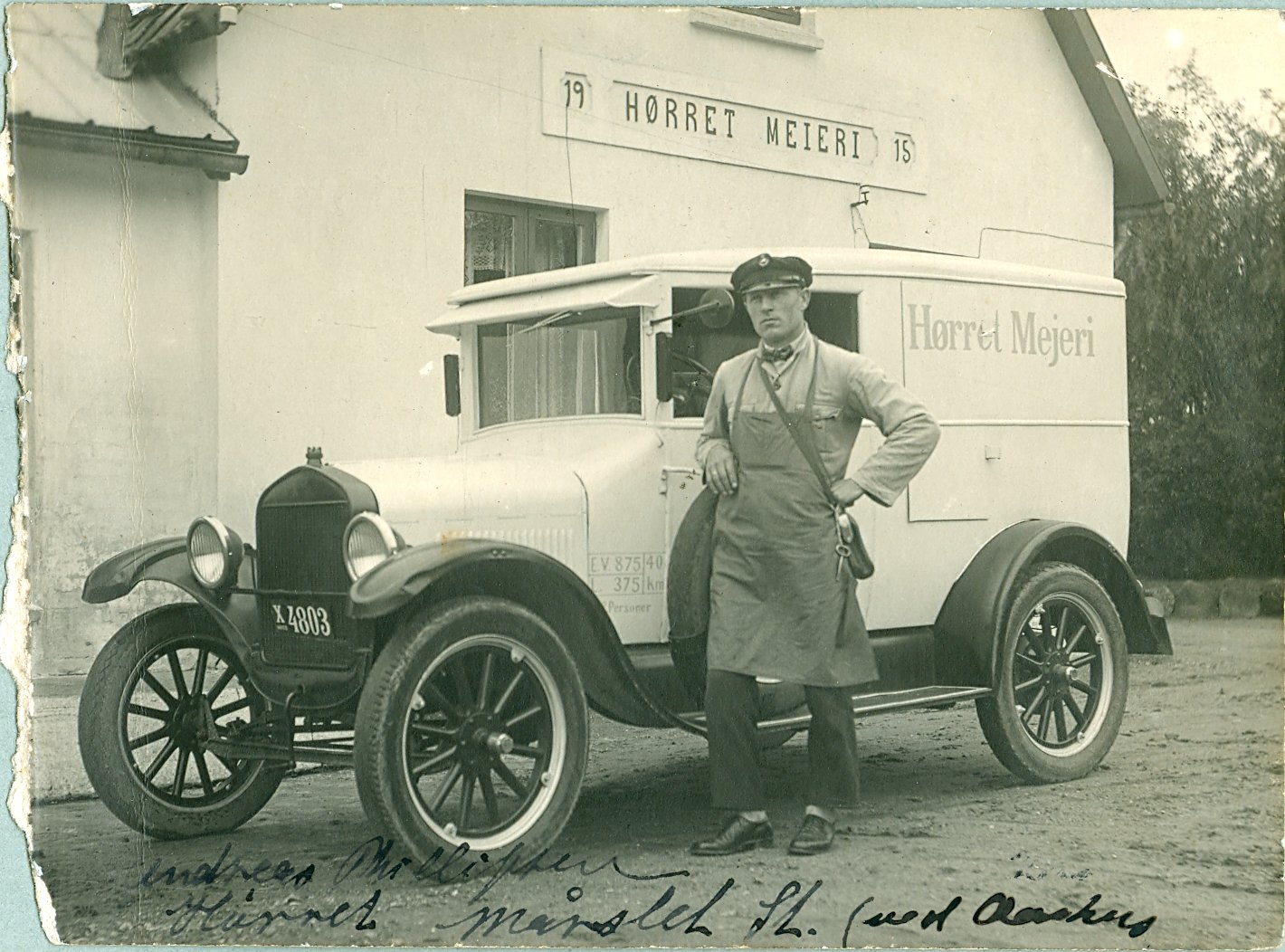| Andreas Phillipsen med sin nye FORD. X 4803 bygget i Odder 1930. Se billedet større - tryk på billedet. Billedet opbevares i Mårslet Egnsarkiv. Billed ID: B45. Registreret i Arkibas. Se billedet bagpå Tekst bagpaa: afl. fra J. Holm? Christensen. Sneagergaard. | |