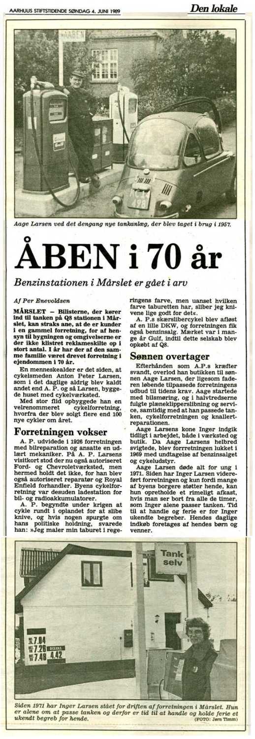 Åben i 70 år. Artikel af Per Enevoldsen i Aarhus Stiftstidenden den 4 juni 1989.