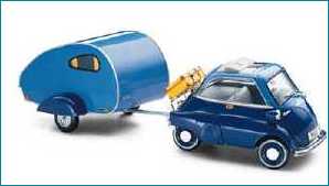 | og der er plads til 2 voksne og 1 barn i bilen - og alligevel var der plads til en lille smule bagage. Desuden kunne man købe en lille bagagebære så der var plads til en kuffert, hvis man kørte på ferie i bilen - og som det ikke var nok med den lille 12HK motor, fandtes der også nogle der kørte med campingvogn efter den lille bil. Original billede ved Inger Larsen. Hørretvej 17. Kopi af billede på Mårslet Egnsarkiv. Billed ID: B130. Registreret i Arkibas. | ||||