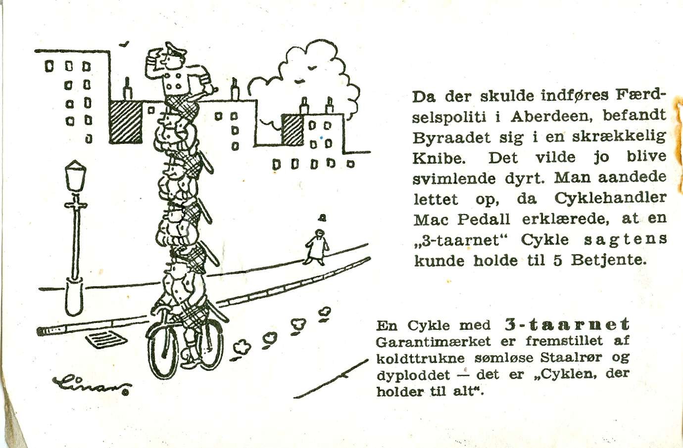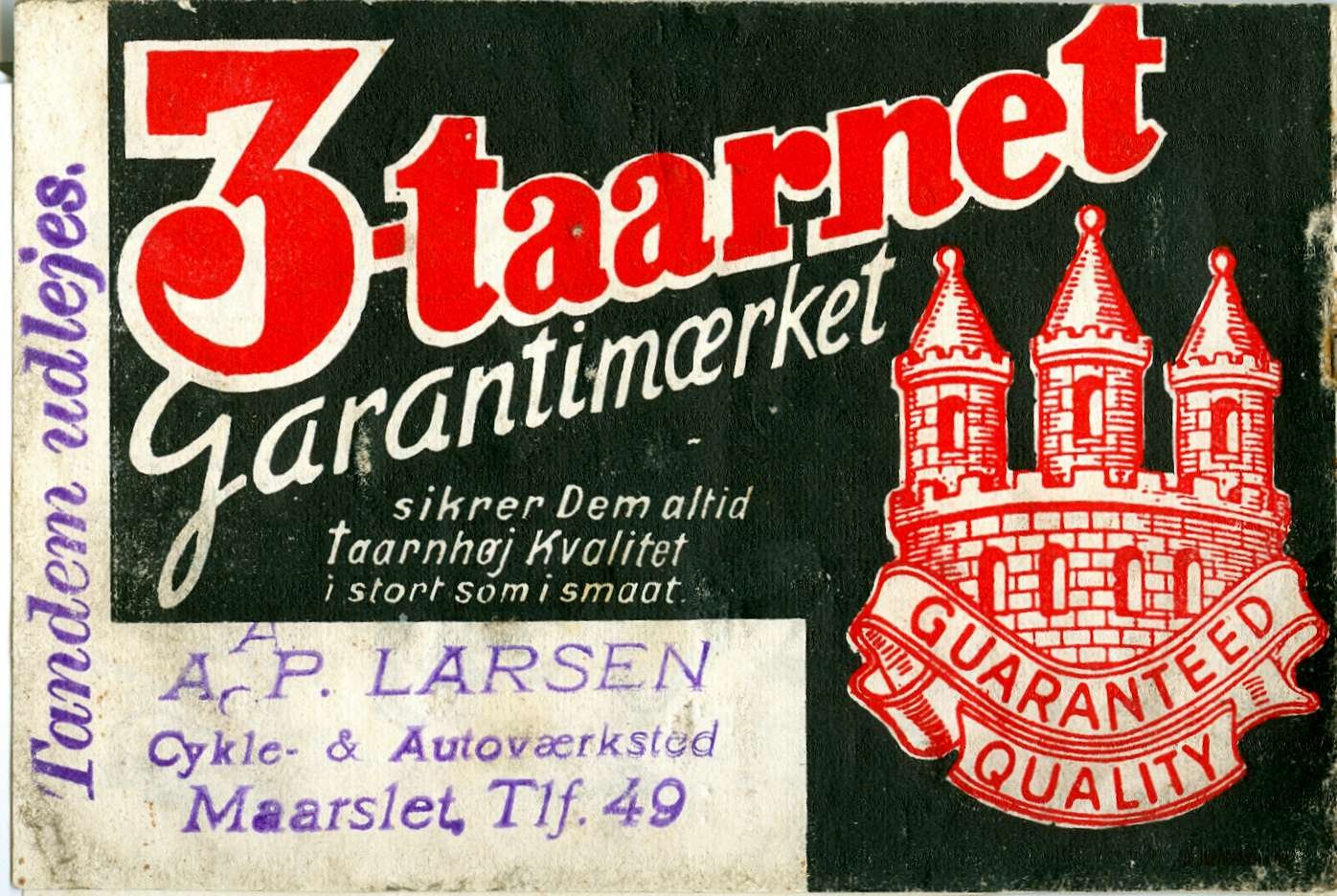 A. P. Larsen solgte bl.a. kvalitetscykler med "3-taarnet Garantimærket" fra butikken Hørretvej 17.