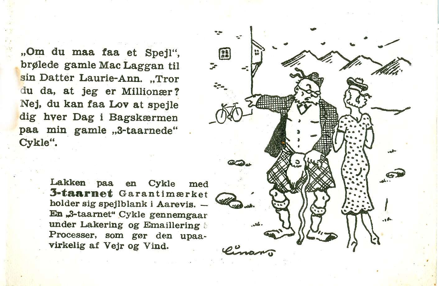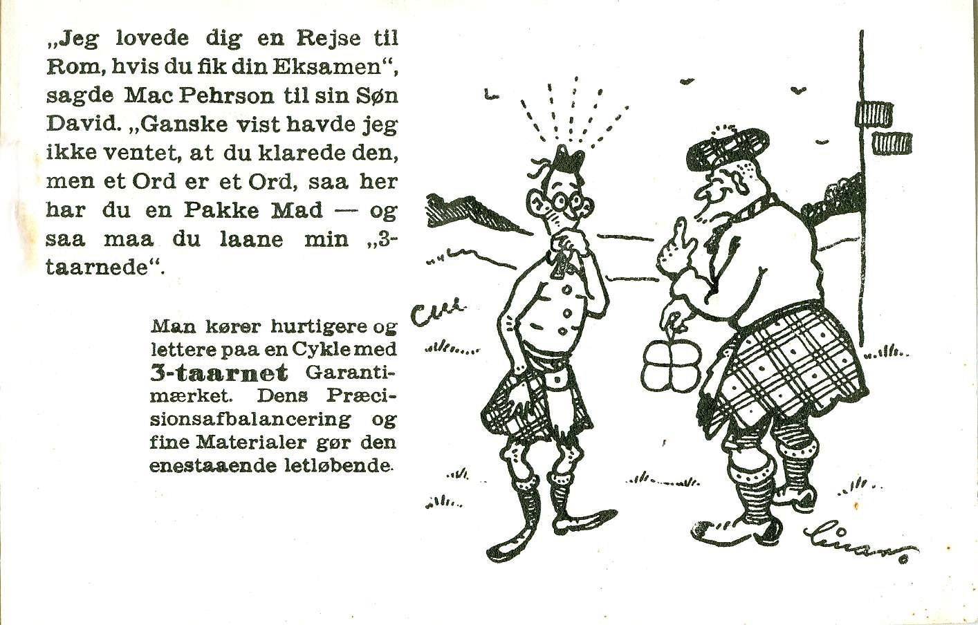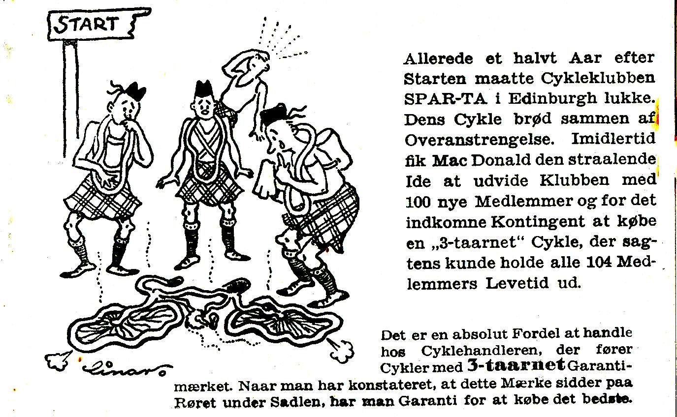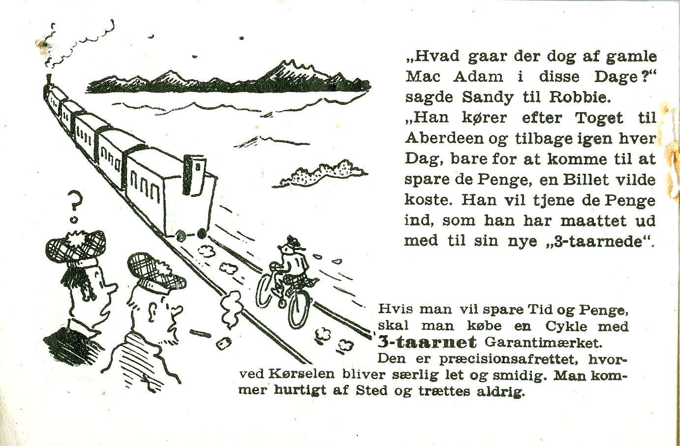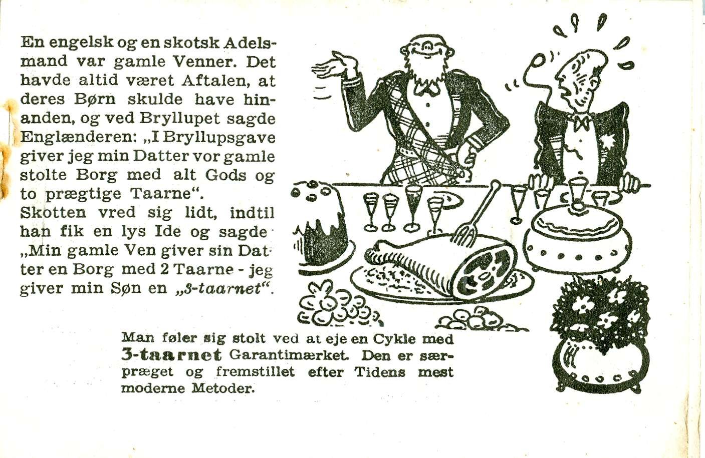 Cyklernes FREMRAGENDE egenskaber fremgår af dette reklamehæfte med de "10 3-taarnede SKOTTE HISTORIER".