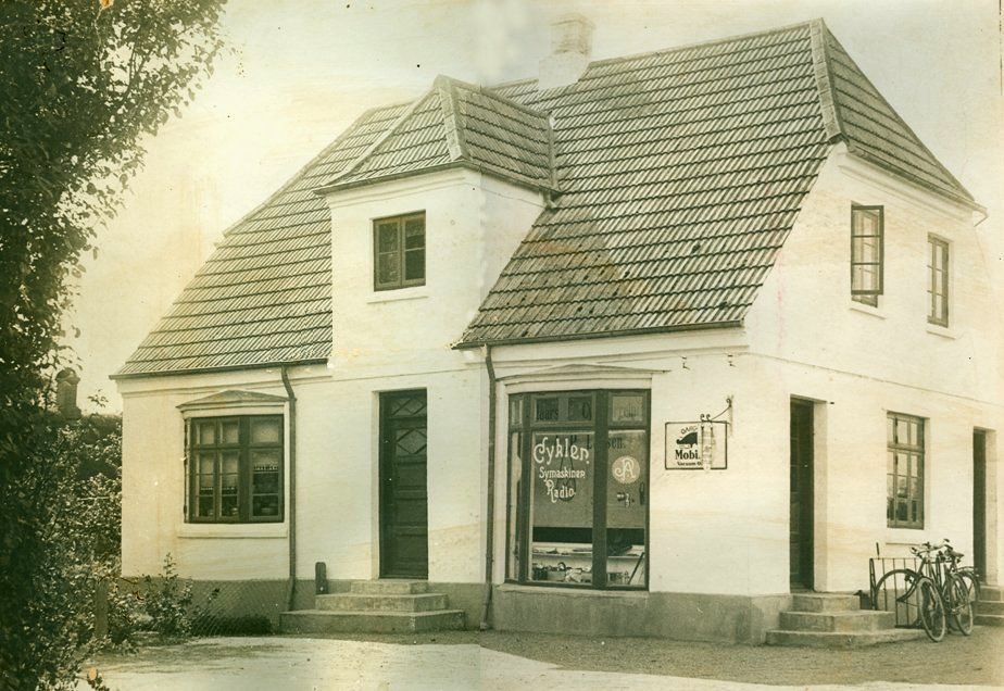 Her startede han en cykelforretning og supplerede indtægten ved at køre rundt nogle dage om ugen med sin skærslibercykel for at slibe knive og sakse. I 1926 udvidede ´A.P.´ med autoreparation, og der kom også en forhandling af motorcykler til. Læs mere om A.P., sønnen Aage Larsen, Inger Larsen og benzintanken på Hørretvej nr. 17