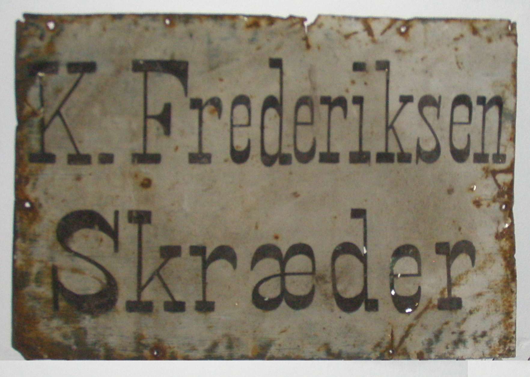 På billedet til højre, fra 1901, ses skiltet mellem døren og første vindue til højre for døren.