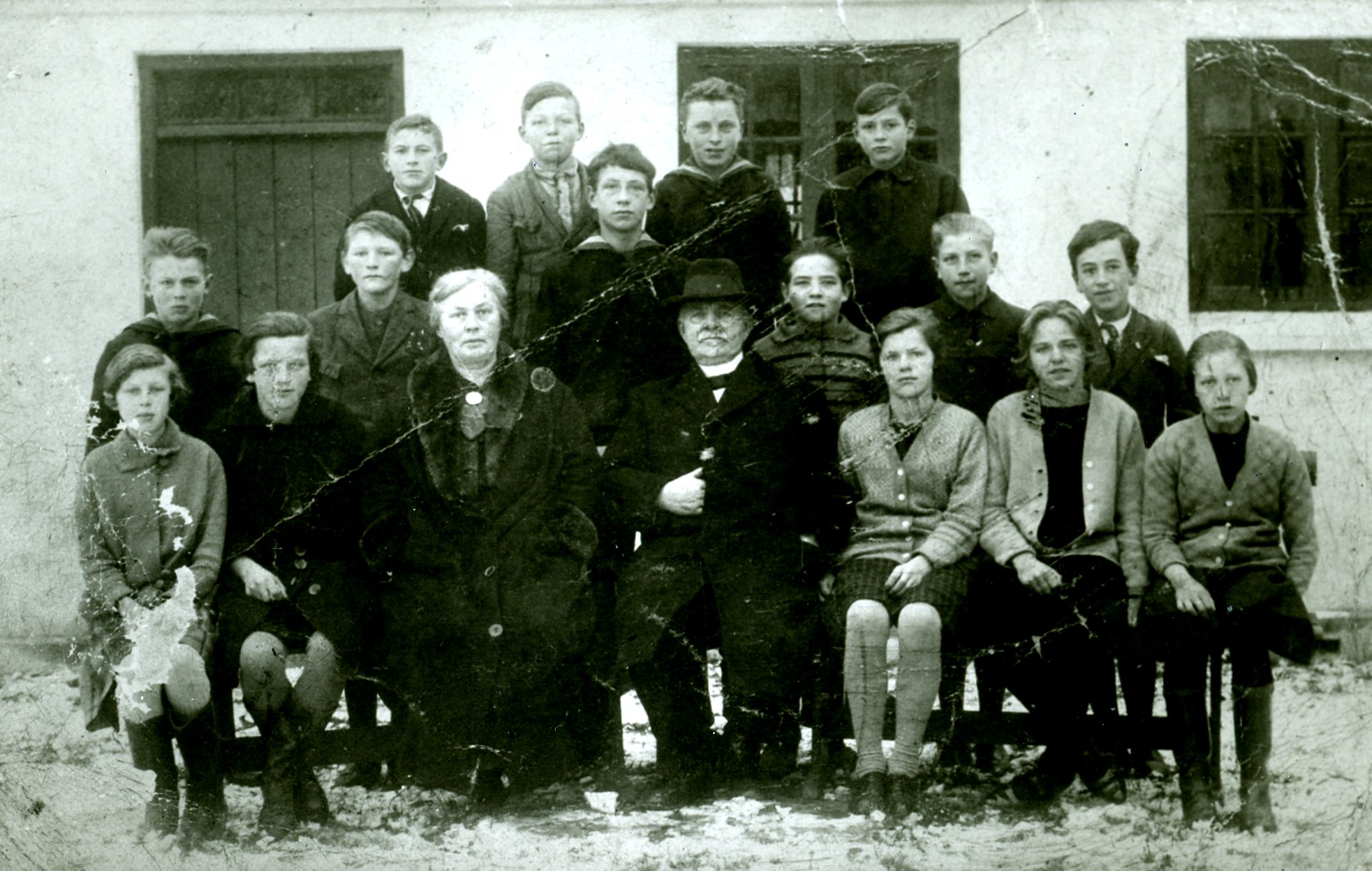 | Bagerst fra venstre: 1. ? 2. Niels Knudsen ? 3. ? 4. Hans Adolf ? I midten fra venstre: 1. ? 2. ? 3. ? 4. ? 5. ? 6. Erik Vilhelm Føns Rasmussen Forrest fra venstre: 1. Astrid Frederiksen 2. Mary Marie Jensen 3. ? 4. Pastor Johan Mikkelsen 5. ? 6. Agata Jensine Jensen 7. ? Kender du navne på nogen af de manglende - send en e-mail til: maarsletegnsarkiv@gmail.com SE navneliste fra kirkebogen | |