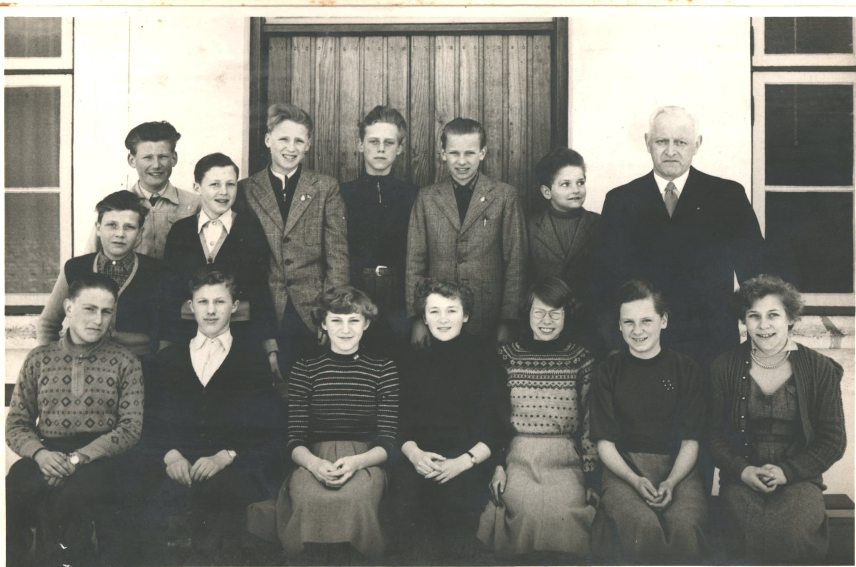 Konfirmanderne blev konfirmeret af sognepræst Thøger Rugholm i 1955