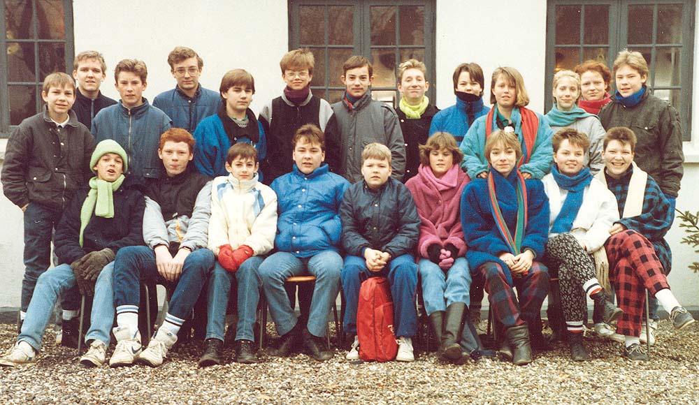 7.a 1985/86 ved konfirmationsforberedelsens start. Billedet er taget i præstegården foran det gamle - og nu nedrevne - sognehus i efteråret 1985. (Foto Martin Kontni) Vil du se billedet større - tryk på billedet. Genkendt og navngivet af Morten Hviid Kristensen og Lone Moldt januar 2009. Registreret i Arkibas. Billed ID: B861.