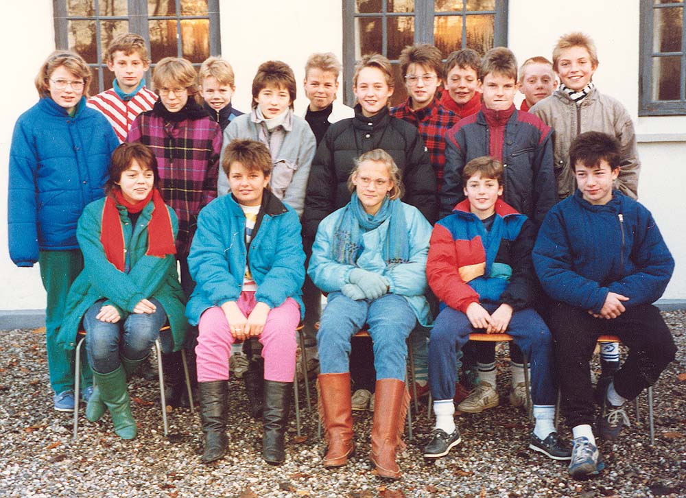 7.a 1986/87 fotograferet ved starten af konfirmandundervisningen. Billedet er taget i efterÄret 1986 foran det gamle - nu nedrevne -sognehus. (Foto: Martin Kontni)