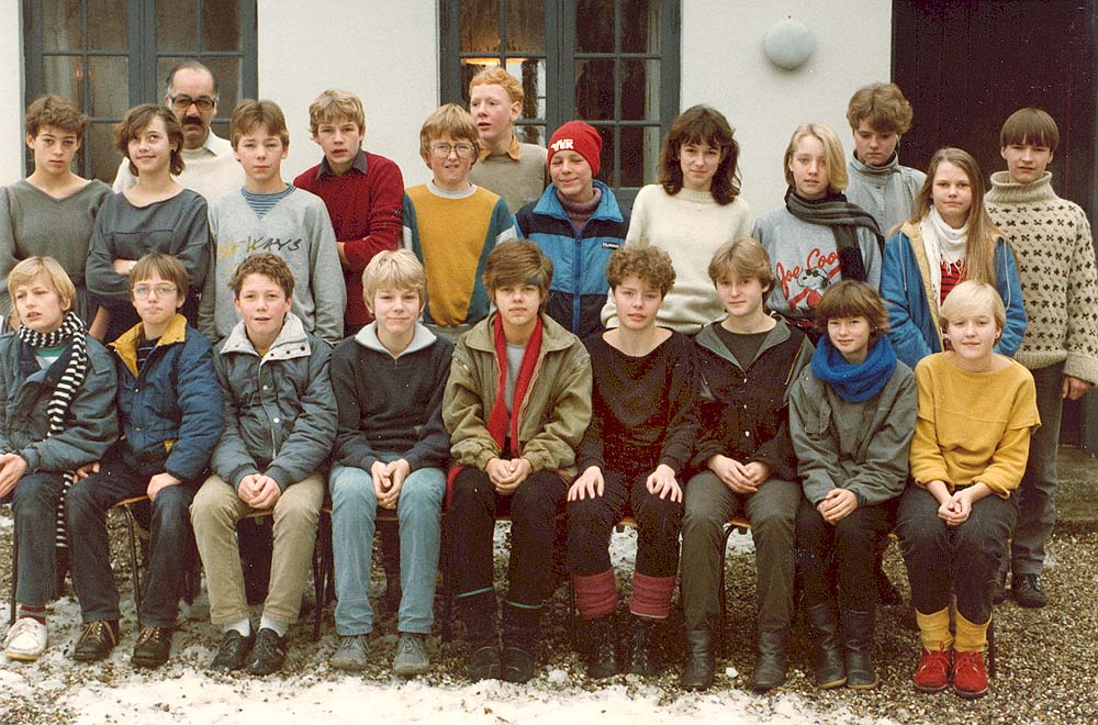 7.b 1983/84 blev konfirmeret af sognepræst Martin Kontni. Billedet er taget i efteråret 1983 af Martin Kontni foran den gamle konfirmandstue.
