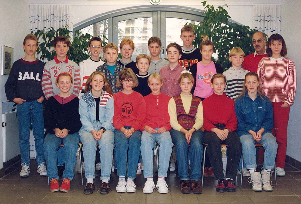 7.b 1991/92 blev konfirmeret af sognepræst Martin Kontni. Billedet er taget i forhallen til det nye sognehus i efteråret 1991 ved starten på konfirmationsforberedelserne. (Foto: Annelise Kontni) Registreret i Arkibas. Billed ID: 2845 - Navngivet og placeret af familien Andersen august 2013 Vil du se billedet større - tryk på billedet.