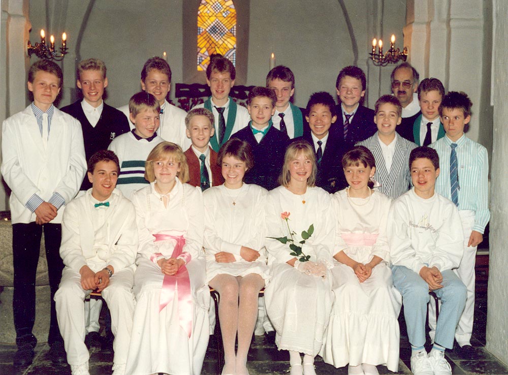 Konfirmation i Mårslet Kirke 1988. 7b klasse i kirken