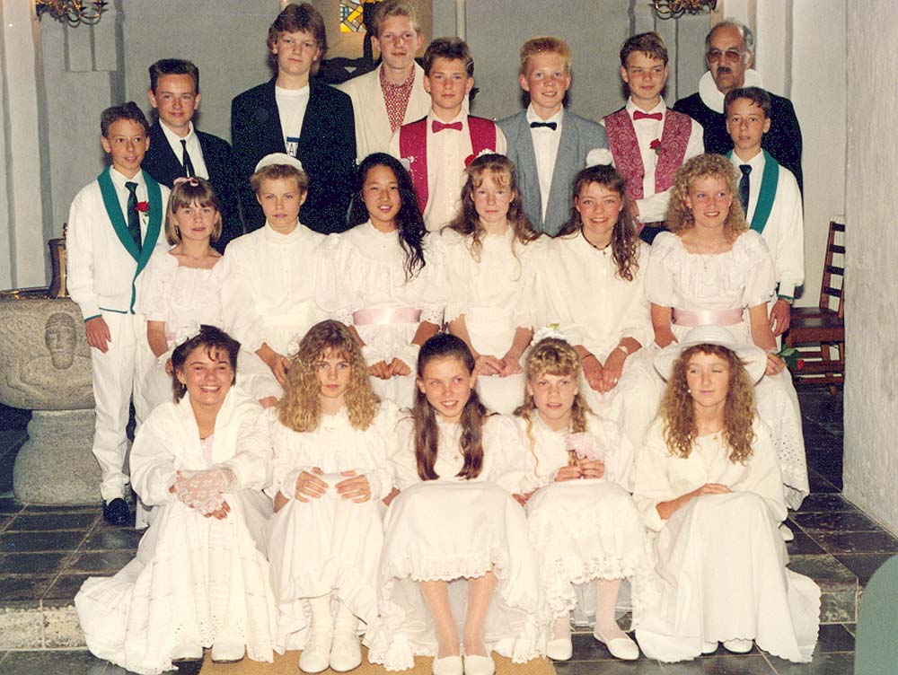 Konfirmation i Mårslet Kirke 1990. 7b klasse i kirken