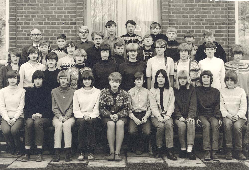 7. klasse 1967 blev konfirmeret af sognepræst Jens Yde. Billedet er taget på Mårslet Skole.