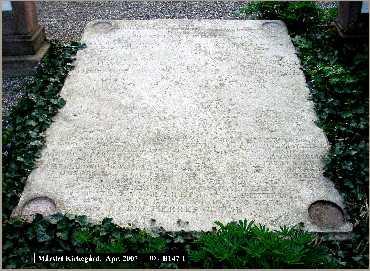 Døde d. 10DE FEBRUARII 1797 EFTERLADENDE sig 3 sønner OG 2 DÖTTRE MED ENKEN SOM DÖDE D: 14 DE MAI 1798 I Maarslet.PræsteGAARD i SIT ALDERS 62 AAR OG 9 MAANEDER.