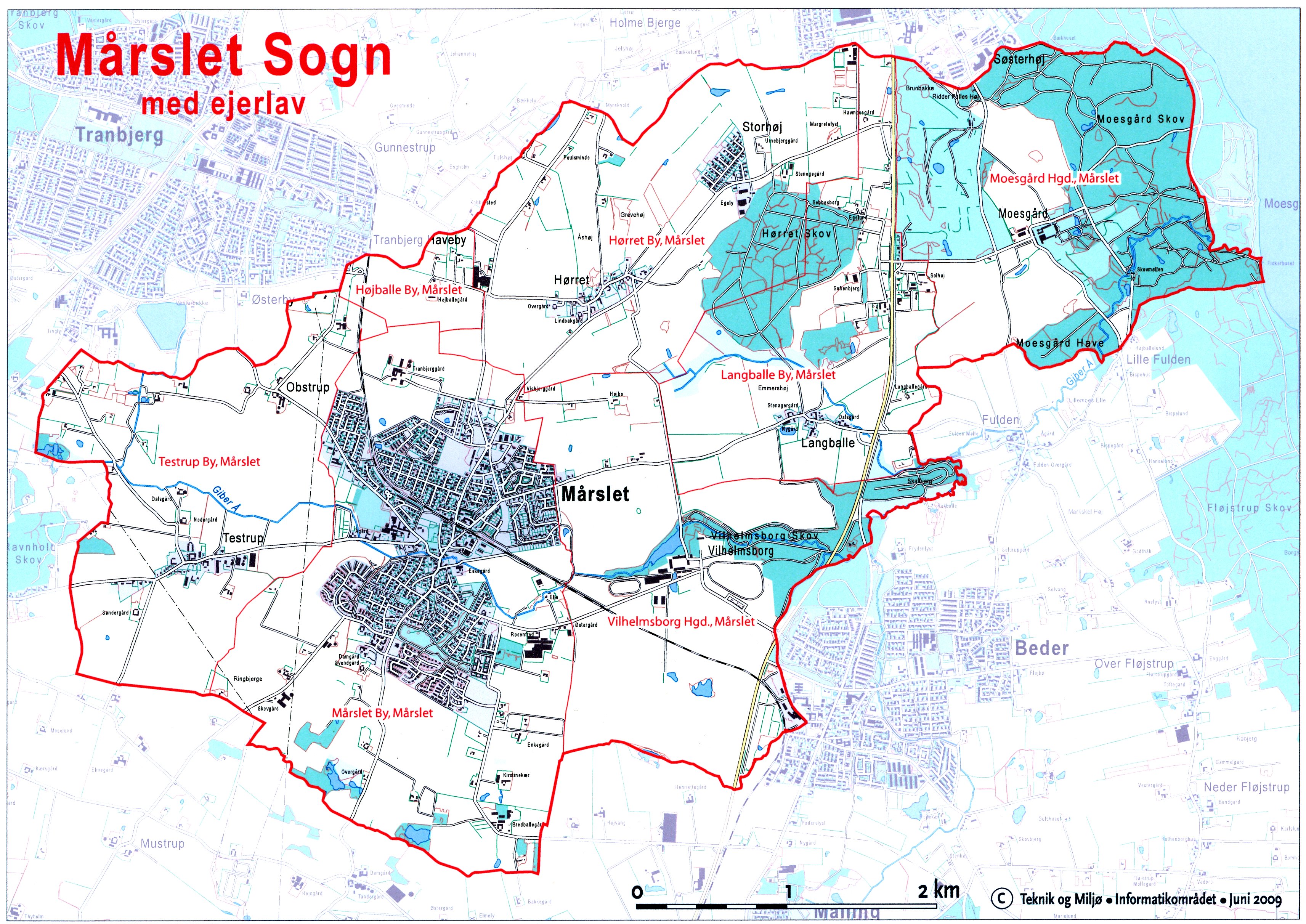 Kort over Mårslet med ejerlav -
