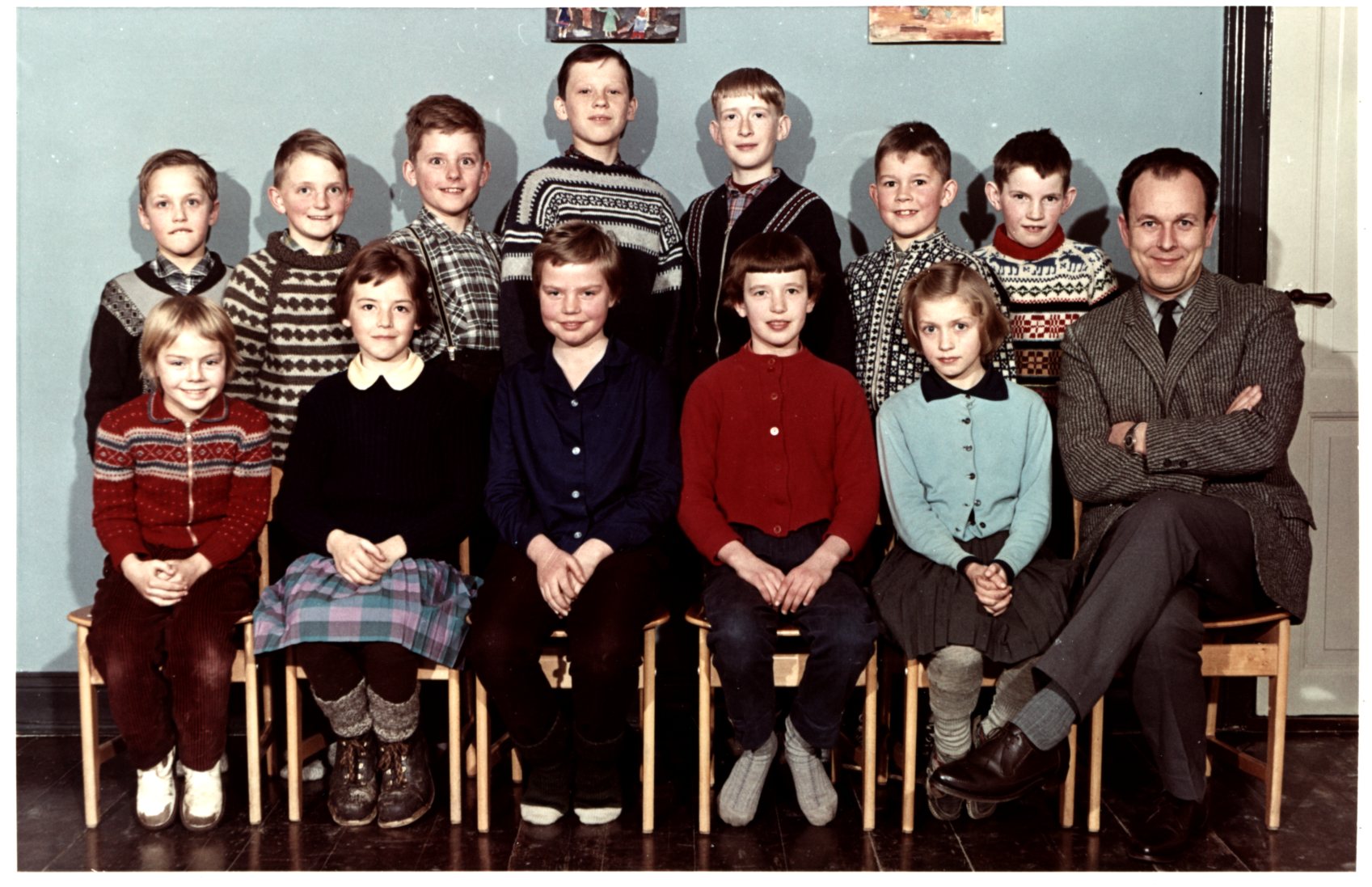 | Bagerst fra venstre: - Leif Nielsen, Frederiksdal - Tyrolerkroen - Eigild Pedersen, Langballe - Steen Sørensen, Teglværkshuset - Jeppe Sinding, Vilhelmsborg - Ole Johan Pedersen (Giber), Langballevej 107 (Bror til Britta Pedersen) - Karsten Stær, Langballe Skole -Kurt Due, Langballegaard Forrest siddende fra venstre: - Anne Grethe Olsen, Langballe Bakke - Birgit Hansen, Langballe Mark - Charlotte Wibling, Langballe Bakke - Britta Pedersen, Langballevej 107 (Søster til Ole Johan Pedersen) - Birthe Hansen, Sofienbjerg - Olaf Stær, Langballe Skole, Lærer | |