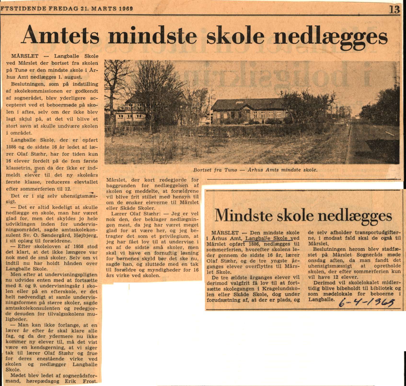 Avisartikel bragt i Århus Stiftstidende 21. marts 1969.