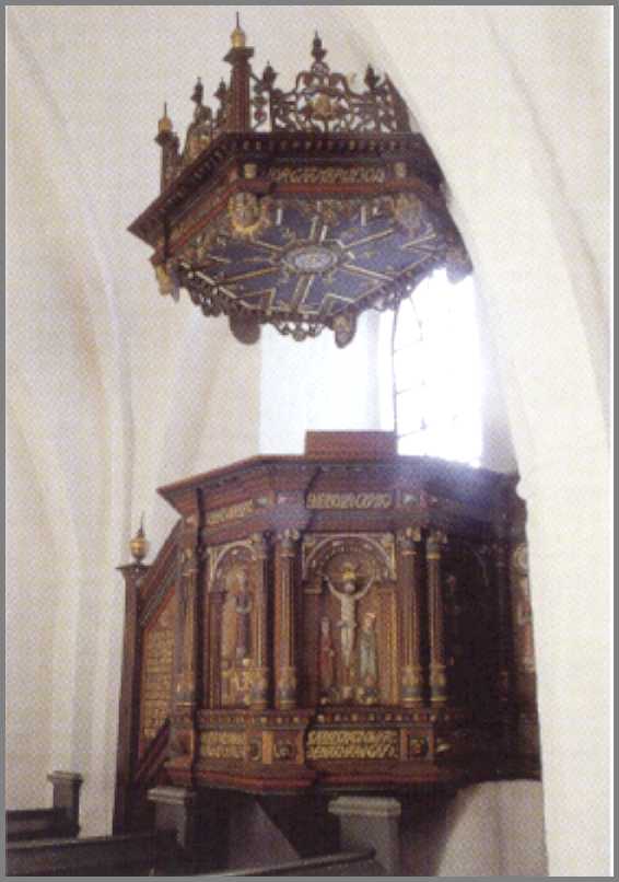 Mårslet Kirkes prædikestol i ungrenæssance-stil fra 1603