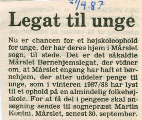 Mårslet Børnehjem. Uddeling af legat 1987.