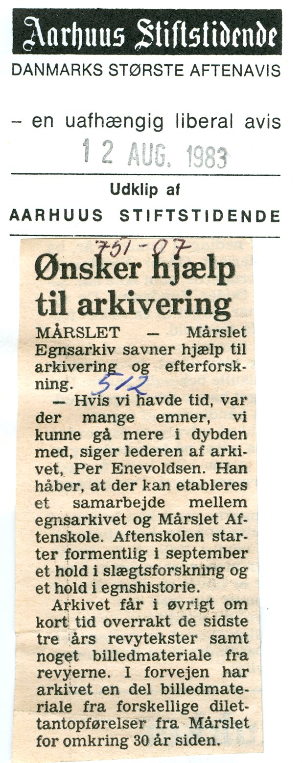 | MÃ¥rslet Egnsarkiv - Avisudklip og billeder fra arkivets start. | |