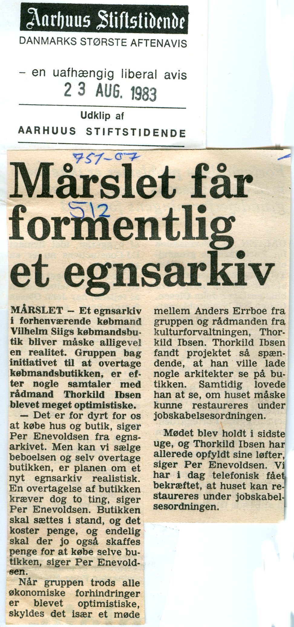 | MÃ¥rslet Egnsarkiv - Avisudklip og billeder fra arkivets start. | |