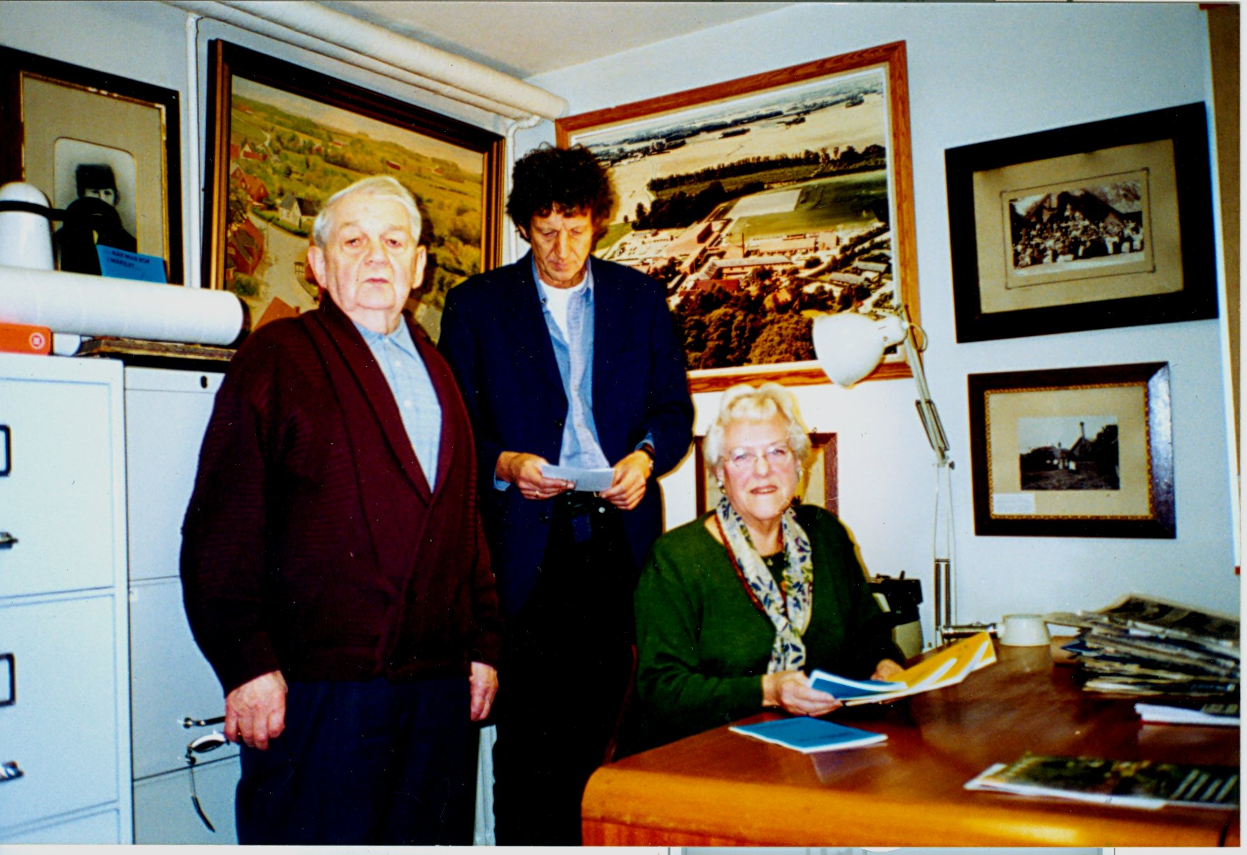 Mårslet Egnsarkiv. 1999. På billedet ses fra venstre: Nu afdøde gdr. Edvard Borgbjerg, musiker Anders Errboe og Ingerlise Wendland. Alle 3 medlemmer af Mårslet Sogns Lokalhistoriske Forening, der er støtteforening for Mårslet Egnsarkiv. Bestyrelsesmedlemmerne siddder bl. a. 'vagt' når arkivet normalt har åbent den anden og fjerde onsdag i hver måned, fra kl. 16:00 til 17:30.