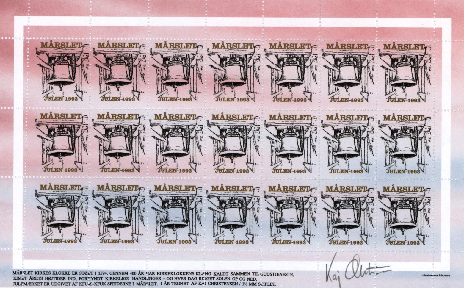 1993. Grafik: Kaj Christensen. - Motiv: Mårslet Kirkes klokke.