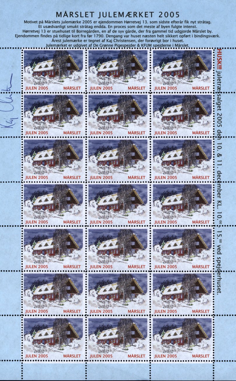 2005. Grafik: Kaj Christensen. Motiv: Ejendommen Hørretvej 13 - stuehuset til Borregaarden.