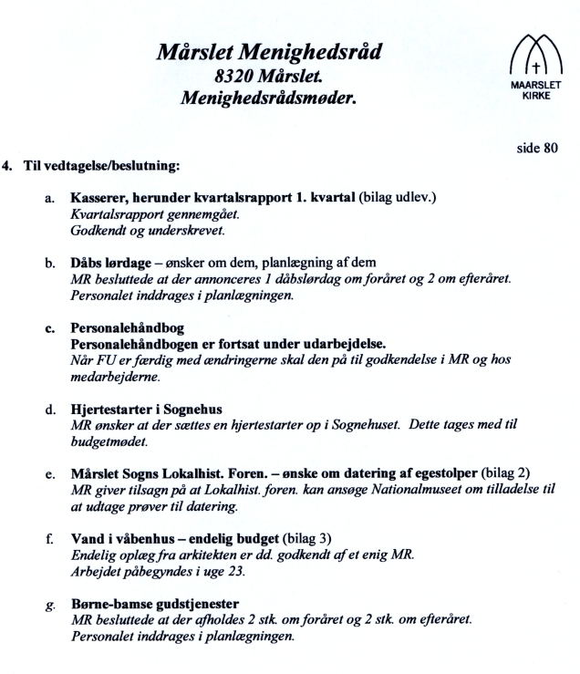 | Tilladelse fra Mårslet Menighedsråd. Uddrag af referat fra Menighedrådes møde den 18. maj 2011.