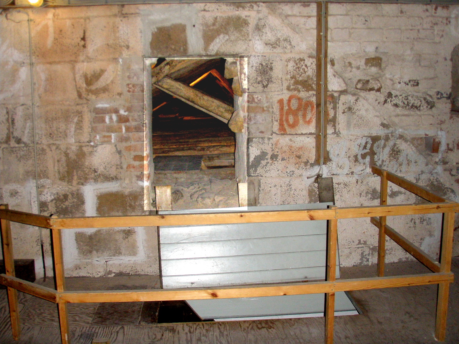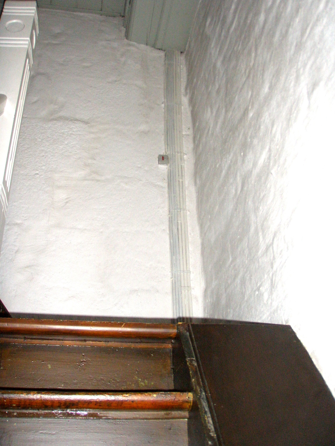 Billede 15. Gennem hullet i muren giver adgang til kirkens loft. (Husk først at lukke lemmen - ellers en snarlig begravelse!) |