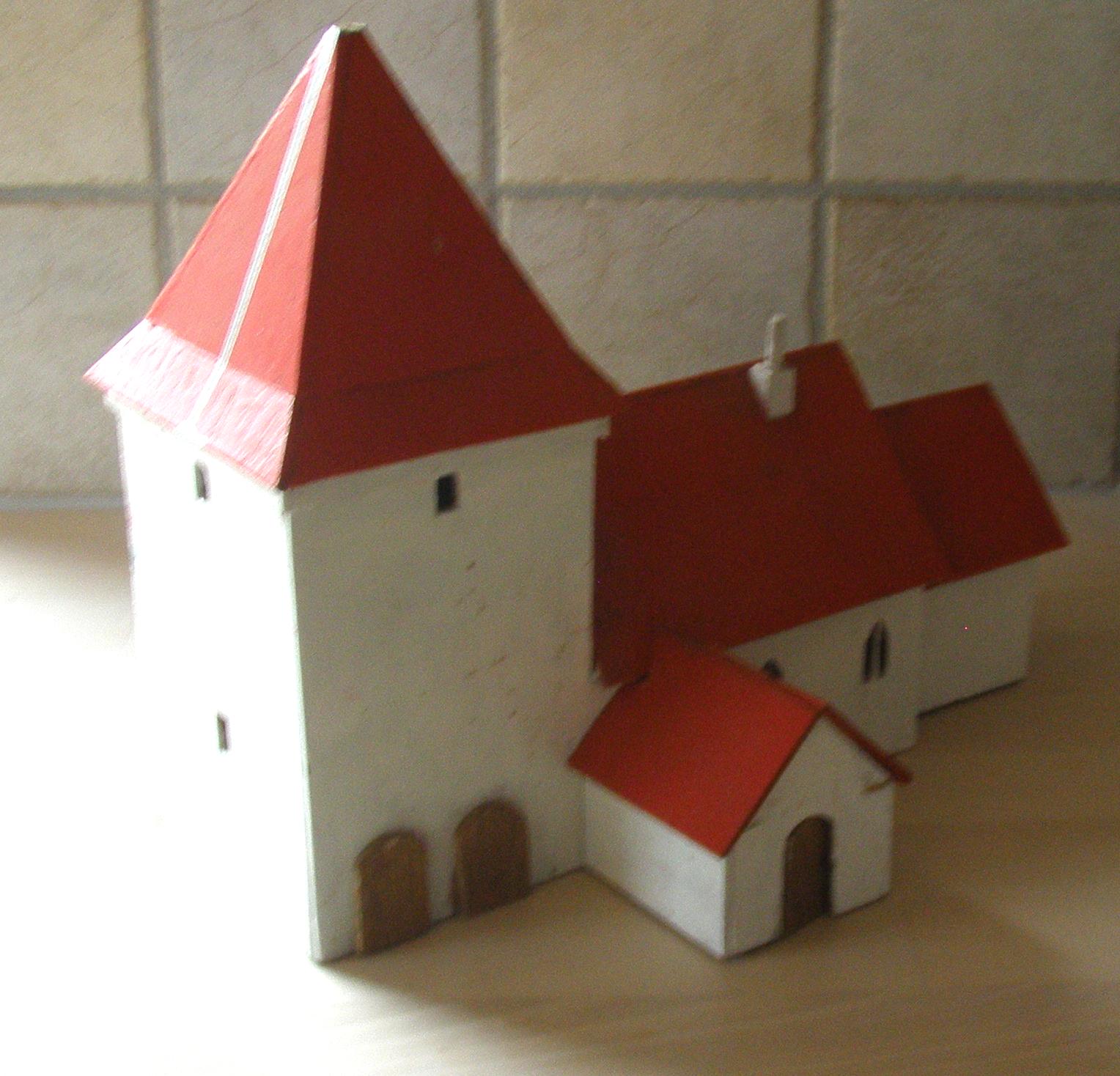 Model af Mårslet Kirke lavet af Anker Nørregaard Cramer omkring 1973.