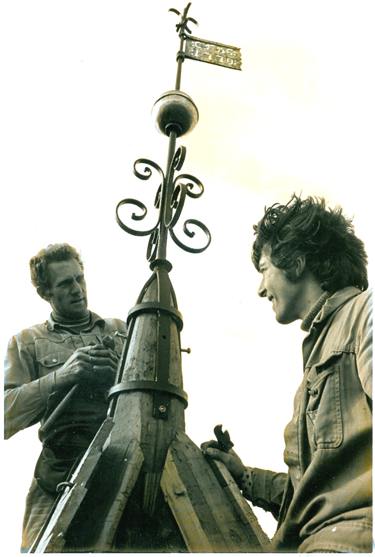 Mårslet Kirke. 1974. Reparation af vindfløj. Billede 1.