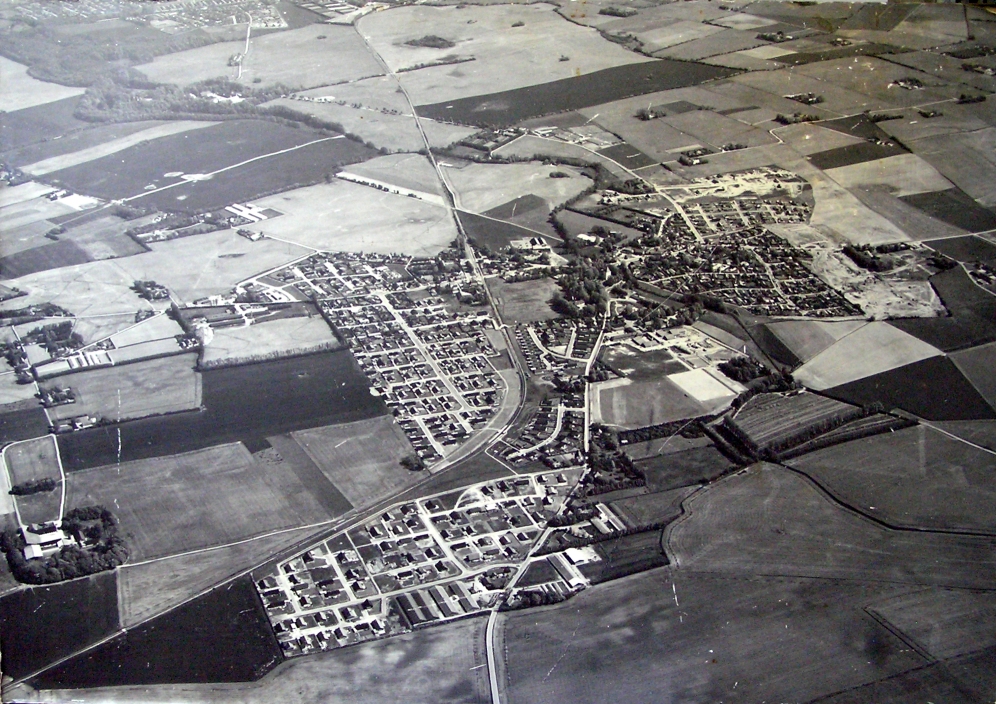 Ca. midt i billedet ses 'Brugsen' med 2 sammenbyggede bygninger på det nye butiksareal.