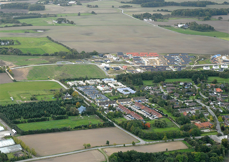 I midten, og lidt til venstre i billedet, ses den nye endestation for linie 10 på Nymarks Allé.