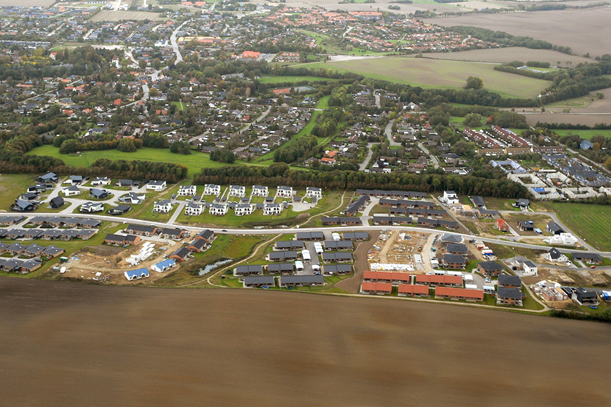 Bag den nye bebyggelse på Nymarks Allé ses Mårslet bypark.