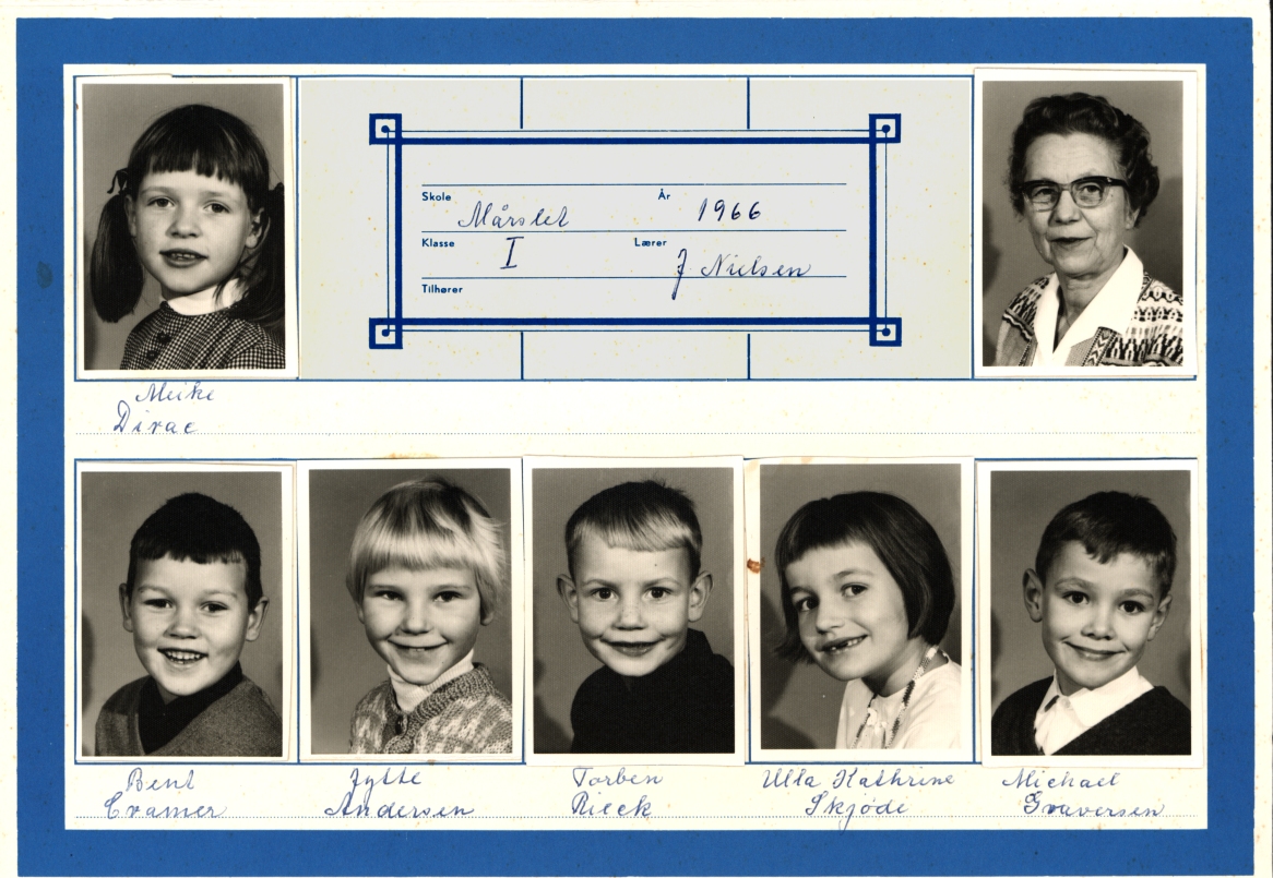 | 1. klasse MÅRSLET SKOLE 1966. Ark 1. Øverst fra venstre: - Anne Grethe Svarke - Bo Kristensen - Susanne Lang - Gert Rosendal - Johannes Siegumfelt Jensen - Morten Sørensen - Annette Hansen - Per Mikkelsen - Annette Beckmann - Stig Jensen Ark 2. Øverst fra venstre: - Meike Dirac - Lærerinde Johanne K. Nielsen - Bent Cramer - Jytte Andersen - Torben Rieck - Ulla Kathrine Skjøde - Michael Graversen Ark 3. Øverst fra venstre: - Hanne Birkegård - Steen Raunkjær - Karen Philipsen - Jesper Persson - Lene Nielsen - Jesper Gubbe - Vagn Thomsen - Christian Ulrik Leth - Flemming Kristiansen - Orla Larsen | |
